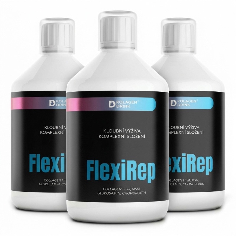 Základními složkami výživového doplňku FlexiRep jsou vysoká dávka kolagenu typů 1, 2 a 3, MSM, glukosamin sulfát, chondroitin sulfát a až 10 mg extraktu z kurkumovníku. Nechybí vitamíny C, D3 a B12.