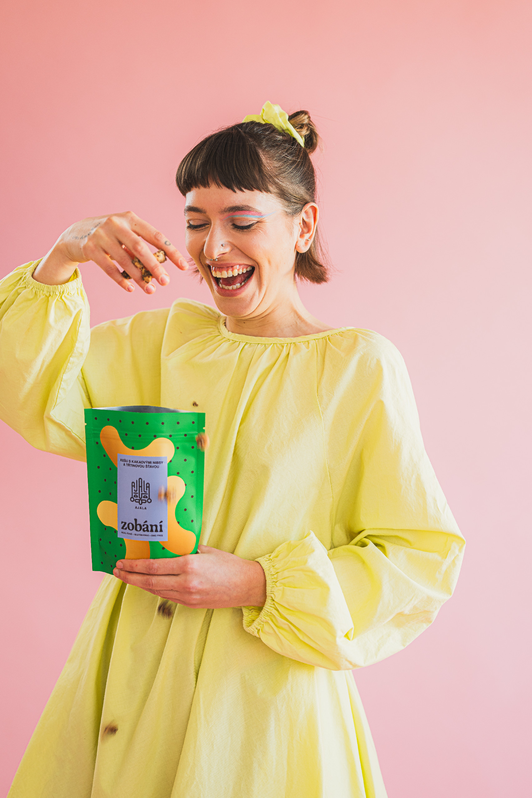 Nenechte se zmást, nezačali jsme vyrábět krmivo pro ptáky, ale neodolatelné a křupavé zobání. Spojením kešu oříšků, výběrových kakaových bobů a panely vznikla delikátní dobrota plná výživných látek. Jemnou chuť kešu a zemitost kakaa skvěle doplňuje slaďoučká sušená třtinová šťáva. Ajala zob je skvělý parťák na túru, zdravá svačinka k práci nebo učení, ozdoba pro ranní kaši, sladká tečka po jídle nebo dárek bez přešlapů. Dodá vám energii, rozjasní myšlenky, pohladí nervy a pozvedne náladu.