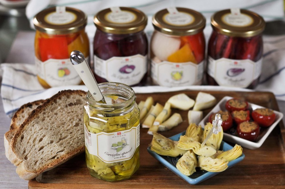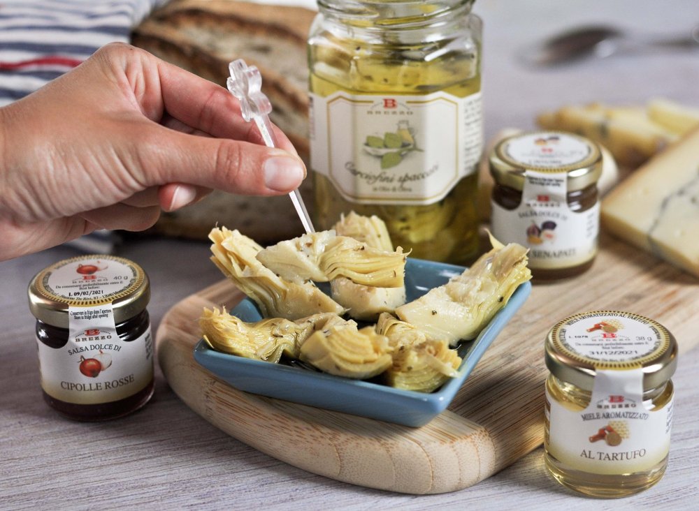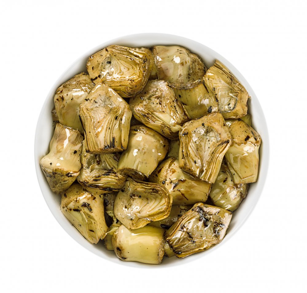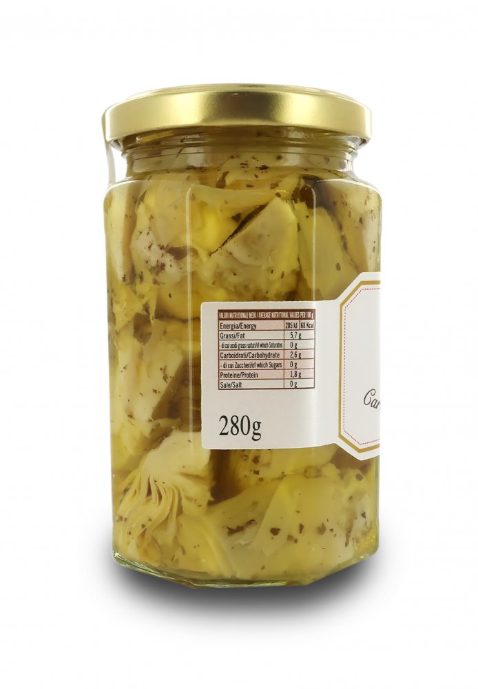 Nejlepší artyčoky italského původu se rozkrojí napůl a naloží do olivového oleje. Dobré, chutné a originální.Tip na servírování: Ideální k dochucení rýže a těstovinových salátů. Skvěle se hodí na pizzu.