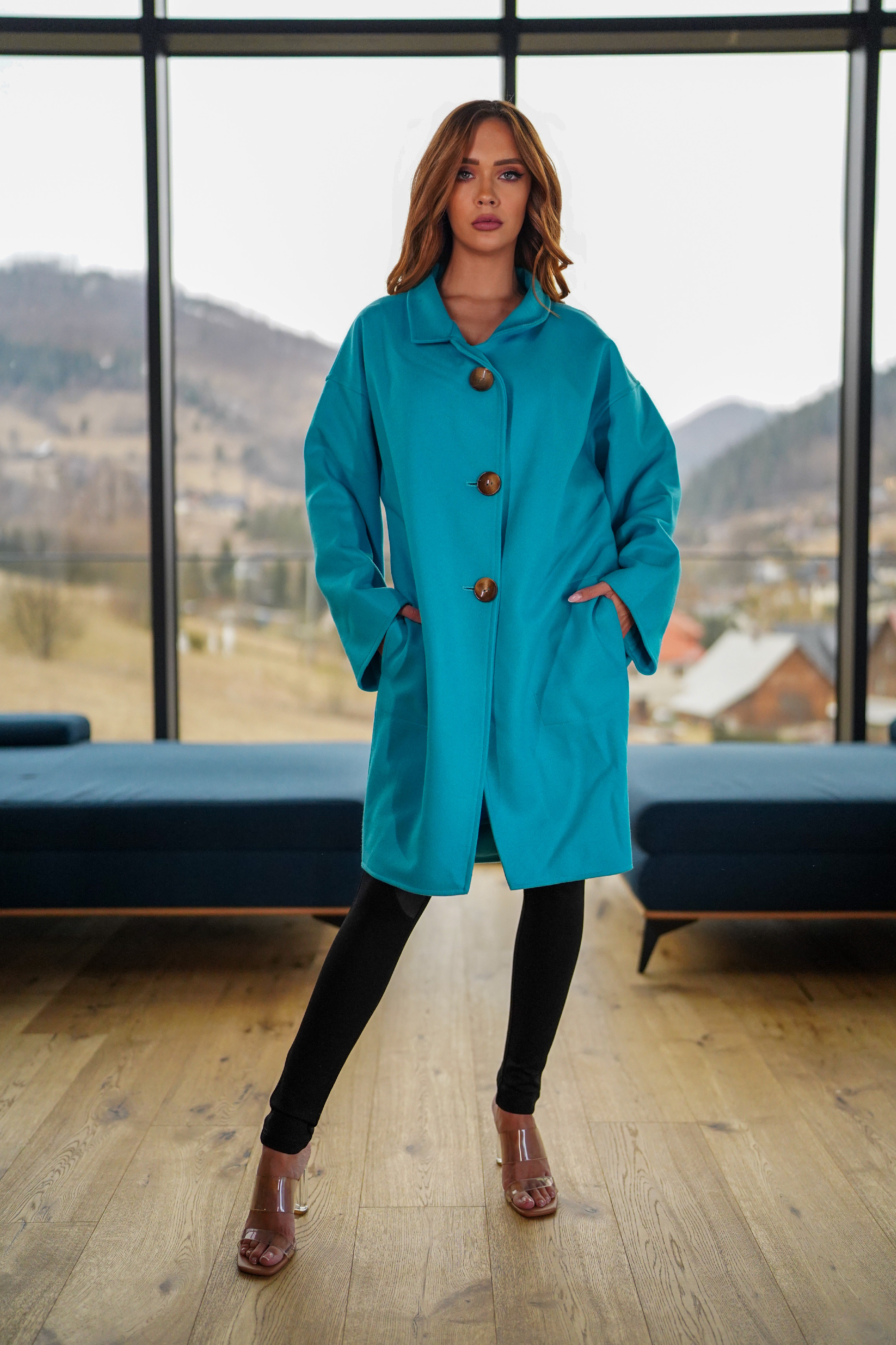 ASPERISSIA Dámský kabát JOLIE Barva: Tyrkysová, Konfekční velikost: XS