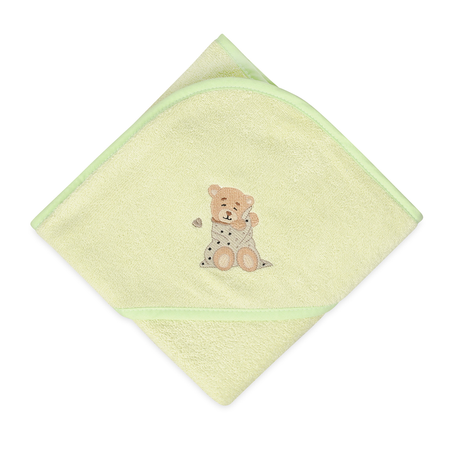 Tato osuška je vyrobena z měkkého froté, z velmi příjemného materiálu na dotek. Osuška je vhodná pro jemnou pokožku dítěte, velmi dobře saje, důkladně osuší vaše dítě a kapuce ochrání mokrou hlavičku dítěte před nachlazením. Ozdobená krásnou výšivkou malého medvídka.