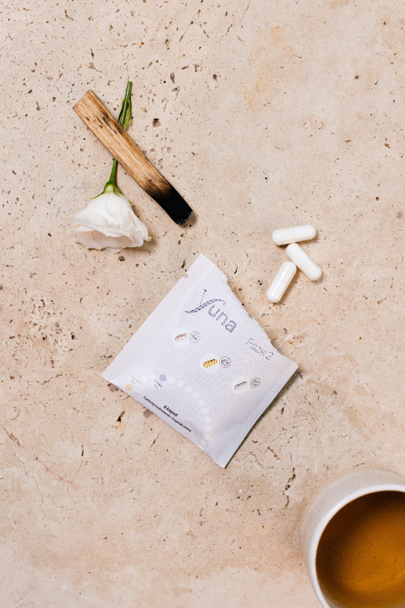 Žlutá kapsle (dávka 1 kapsle): lipozomální vitamín C Liposovit® (kyselina askorbová, fosfolipidová směs), vitamin E (d-alfa tokoferol), vitamín B5 (D-pantothenát vápenatý) 50 mg (833%), koenzym Q10, vitamín B3 (niacinamid), zinek (bisglycinát zinečnatý), vitamín B2 (riboflavin), vitamín B1, vitamín B6 (pyridoxal-5−fosfát) 4,2 mg, vitamín A (retinylpalmitát) 800 mcg, folát (5−methyltetrahydrofolát), biotin, chrom (pikolinát chromitý), selen (selenomethionin), vitamín K2 (MenaQ7® MK7), vitamín B12 (methylkobalamin), vitamín D3 (EirVit®), veganská kapsle (HPMC).