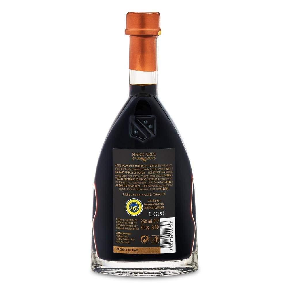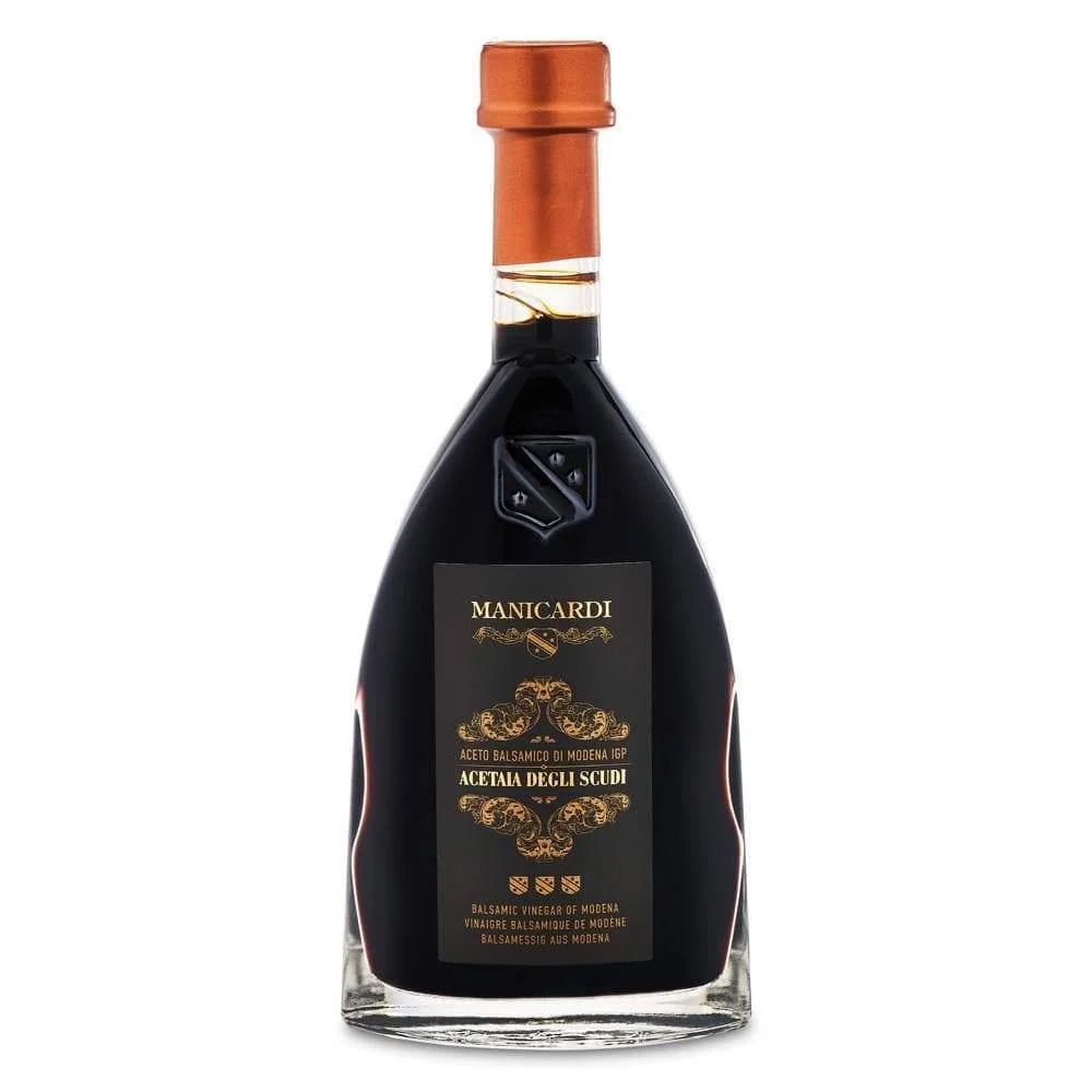 Tento balzamikový ocet z Modeny je produktem pečlivého zrání ve speciálních sudech z kaštanu, dubu, třešní, moruše a jalovce s převahou kaštanu.