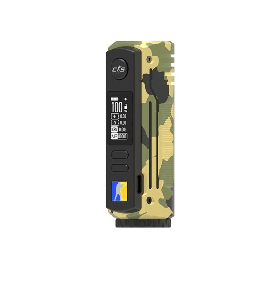 Mód je vybaven jedním slotem pro 18650 nebo 21700 baterii. Baterie není součástí balení a pro vyšší výkony doporučujeme článek s vybijecím proudem alespoň 25A. USB-C konektor slouží k 5V/2A nabijení baterie.