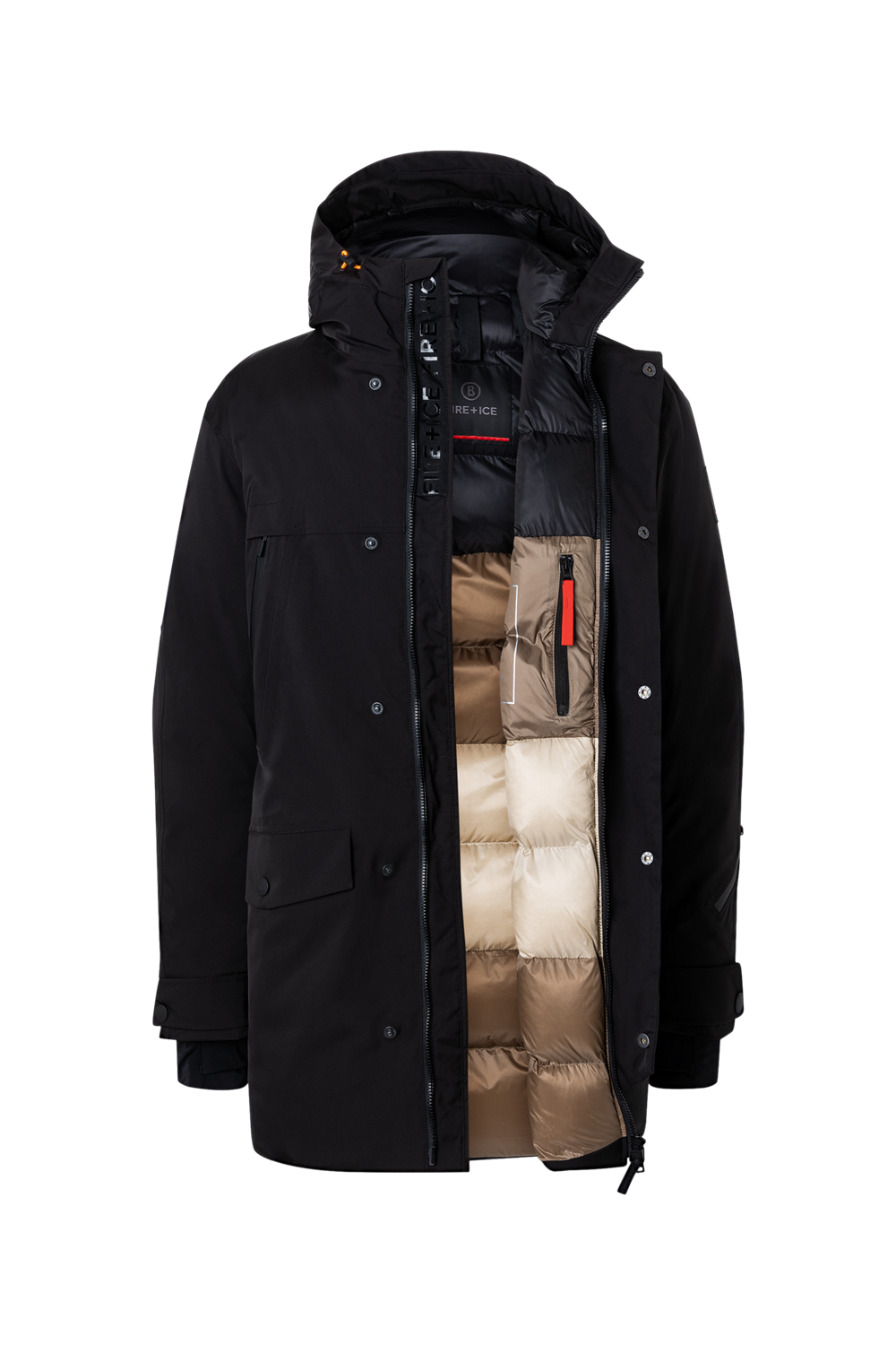 - vrecká: dve hrudné vrecká na zips, dve bočné vrecká s chlopňou a zapínaním na cvoky, zadné bočné vrecko na zips, vrecko na skipas a nášivka FIRE+ICE na ľavom rukáve, vnútorné vrecko na zips