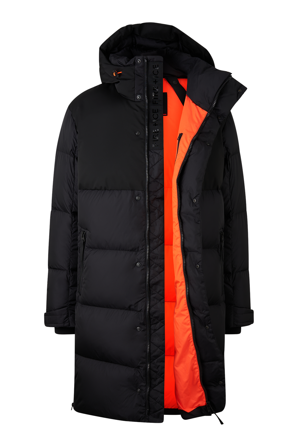 Tento luxusný páperový kabát Walt3-D z kolekcie FIRE+ICE kombinuje nadčasový dizajn s výnimočnou funkčnosťou. Klasický strih, technické detaily a hrejivá výplň z kačacieho peria zaručujú komfort aj v najchladnejších dňoch. Kapucňa so stojačikom, dvojité manžety a vodeodpudivý povrch spoľahlivo chránia pred nepriaznivým počasím. Praktické riešenia ako bočné zipsy na leme, odnímateľné ramenné popruhy a vnútorné i vonkajšie vrecká robia z kabátu ideálneho spoločníka do mesta aj do prírody. Vizuálne ho oživuje kontrastná podšívka a štýlové logo detaily. So zadnou dĺžkou 102 cm poskytuje optimálne pokrytie a elegantný vzhľad.