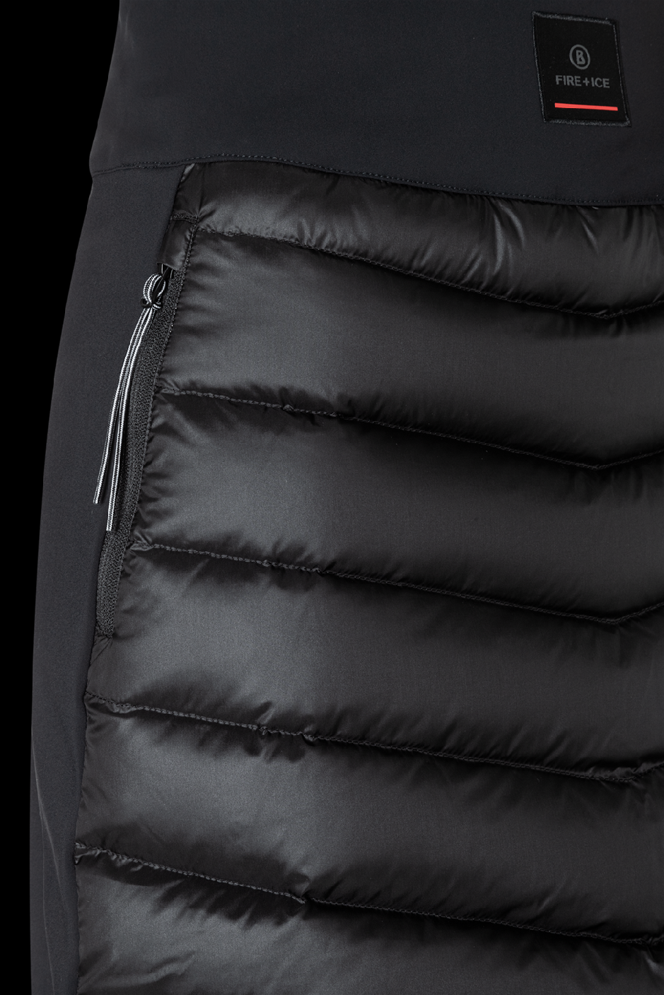 Štýlová midi sukňa Marei-D z kolekcie FIRE+ICE v regular fit A-líniovom strihu kombinuje módny vzhľad s funkčnosťou. Predná časť je z prešívaného nylonu so zateplením, zatiaľ čo zvyšok sukne ponúka pohodlie a voľnosť pohybu. Dvojcestný bočný zips s príveskom B umožňuje ľahké obliekanie a individuálne prispôsobenie. Vysoký elastický pás s logom FIRE+ICE zaručuje pohodlné nosenie. Dve bočné vrecká na zips a reflexná potlač vzadu dopĺňajú praktický dizajn. Vodeodpudivá úprava robí zo sukne ideálnu voľbu na aktívne zimné dni aj mestský štýl.