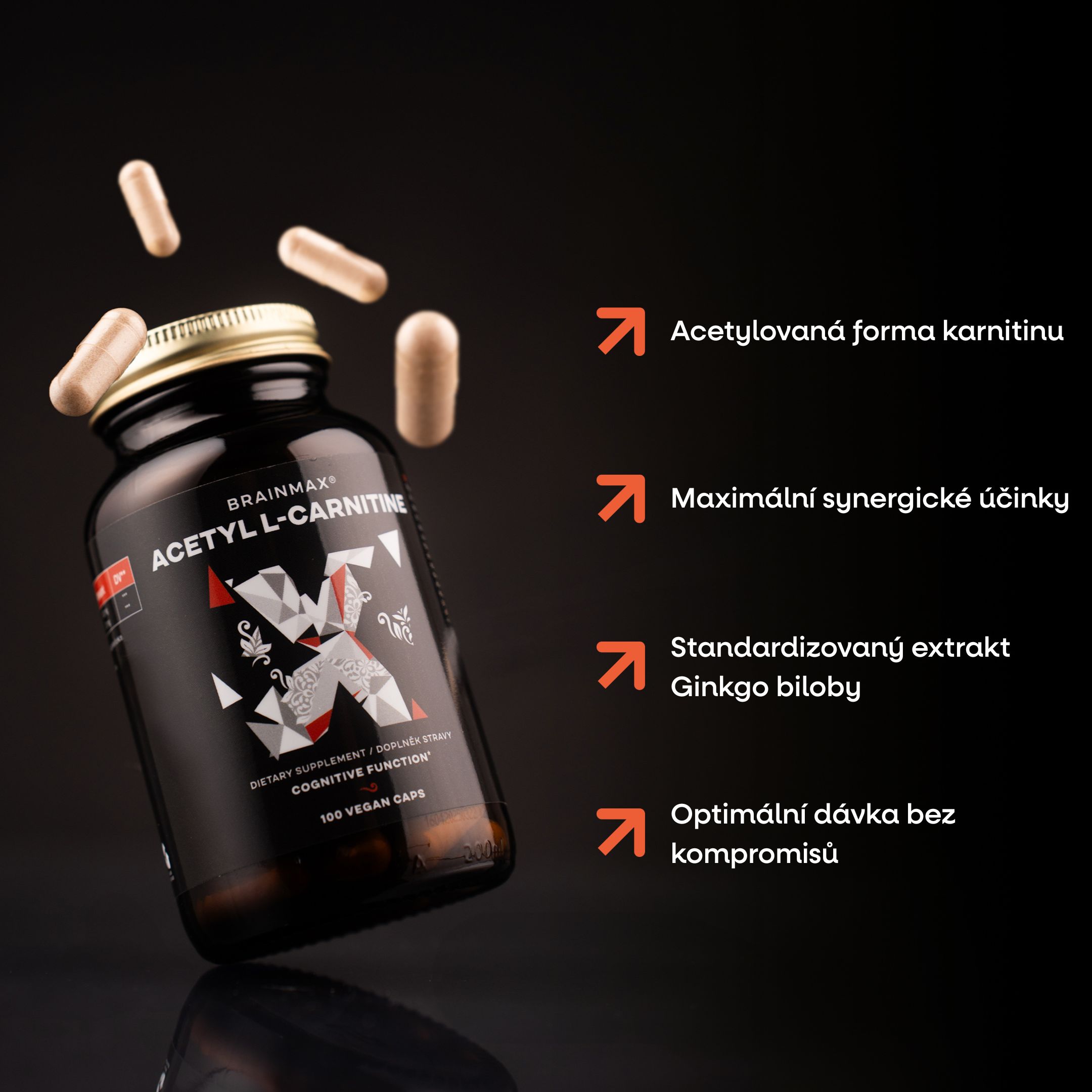 Vaše tajná zbraň pro kognitivní schopnosti. Kombinace Acetyl L-Karnitinu a extraktu z Ginkgo Biloby byla navržena tak, aby váš mozek dostal přesně to, co potřebuje. Díky vynikající vstřebatelnosti acetylované formy karnitinu snadno proniká přes hematoencefalickou bariéru přímo do mozku, zatímco Ginkgo Biloba optimalizuje krevní mikrocirkulaci v mozku a má vliv na paměť, kognitivní funkce a normální činnost mozku.