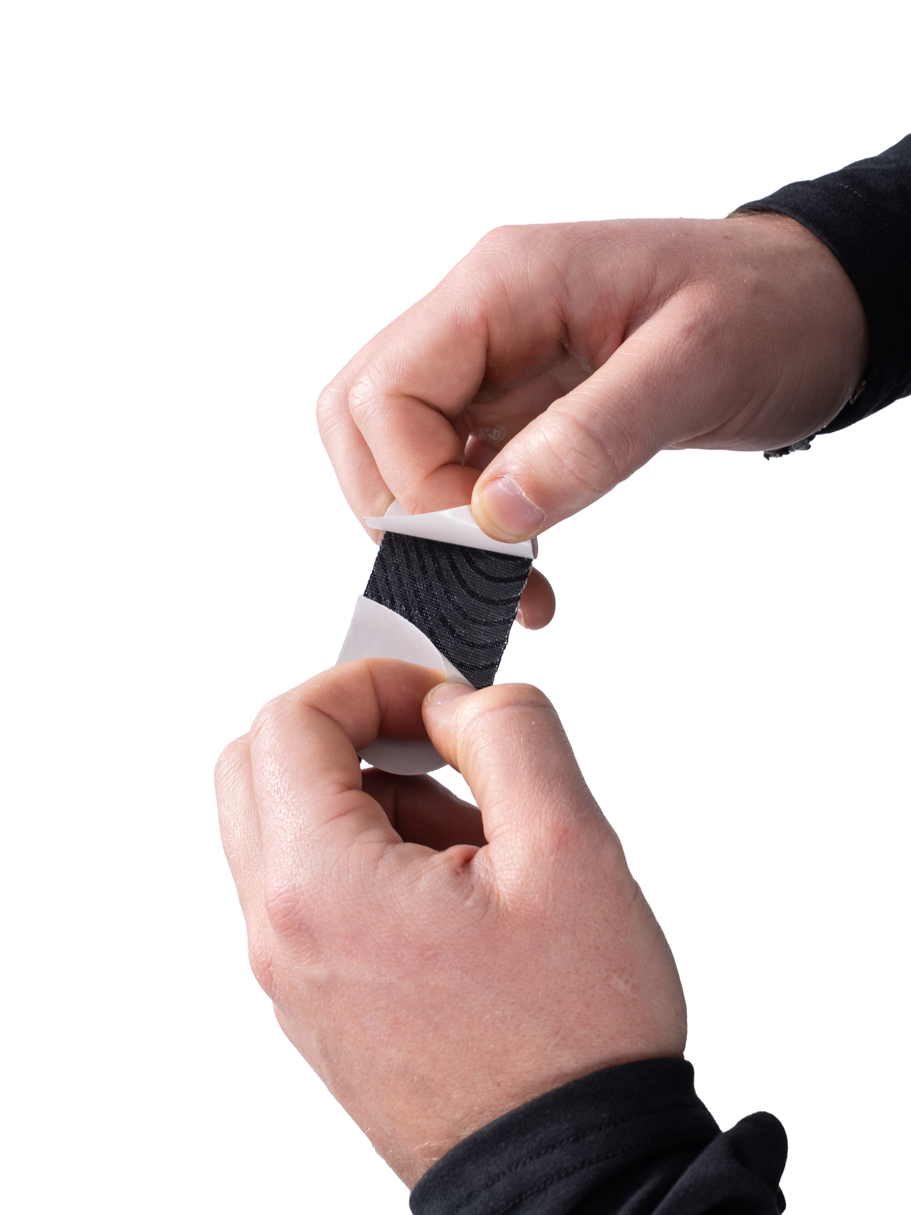 3) Umístěte pásku doprostřed úst, přitlačte na obou koncích a jemně promněte, aby dobře držela.