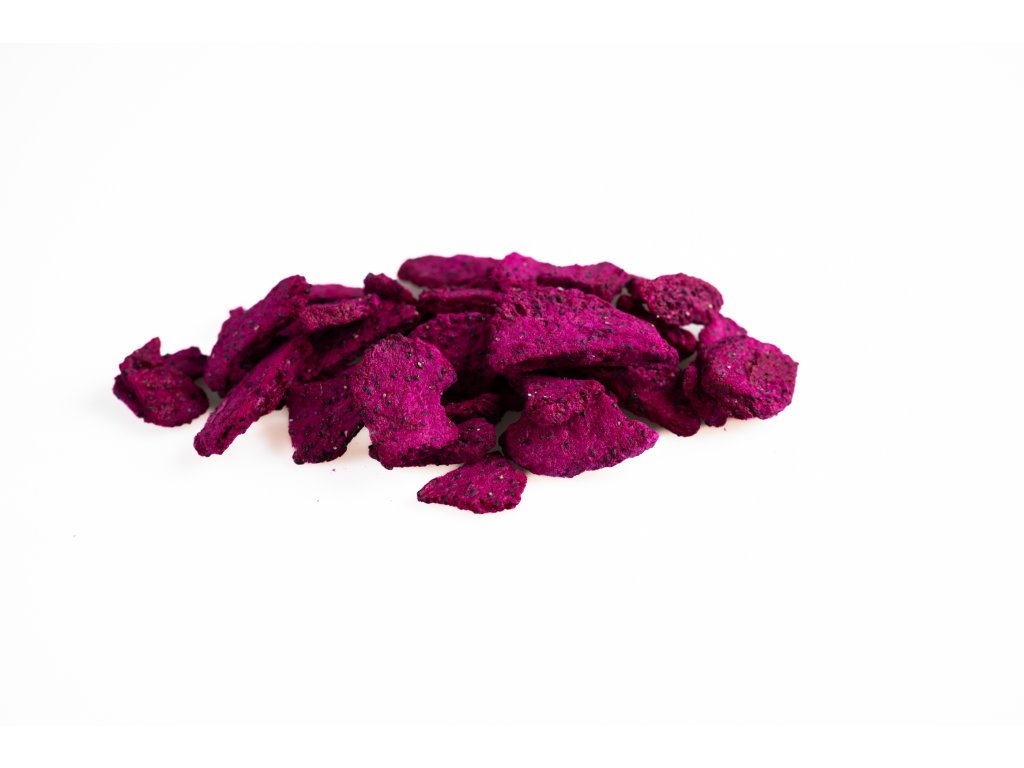 Lyofilizace je šetrná metoda sušení ovoce mrazem, při níž dochází k odstranění téměř veškeré vody prostřednictvím sublimace. Tento proces umožňuje zachovat specifickou chuť, barvu a především důležité vitamíny a minerály dračího ovoce. Kromě toho si lyofilizované ovoce uchovává dlouhou trvanlivost a křupavou konzistenci. Lyofilizované dračí ovoce je ideální jako přísada do snídaňových kaší, smoothie, nebo jako samostatná zdravá svačina plná exotické chuti.