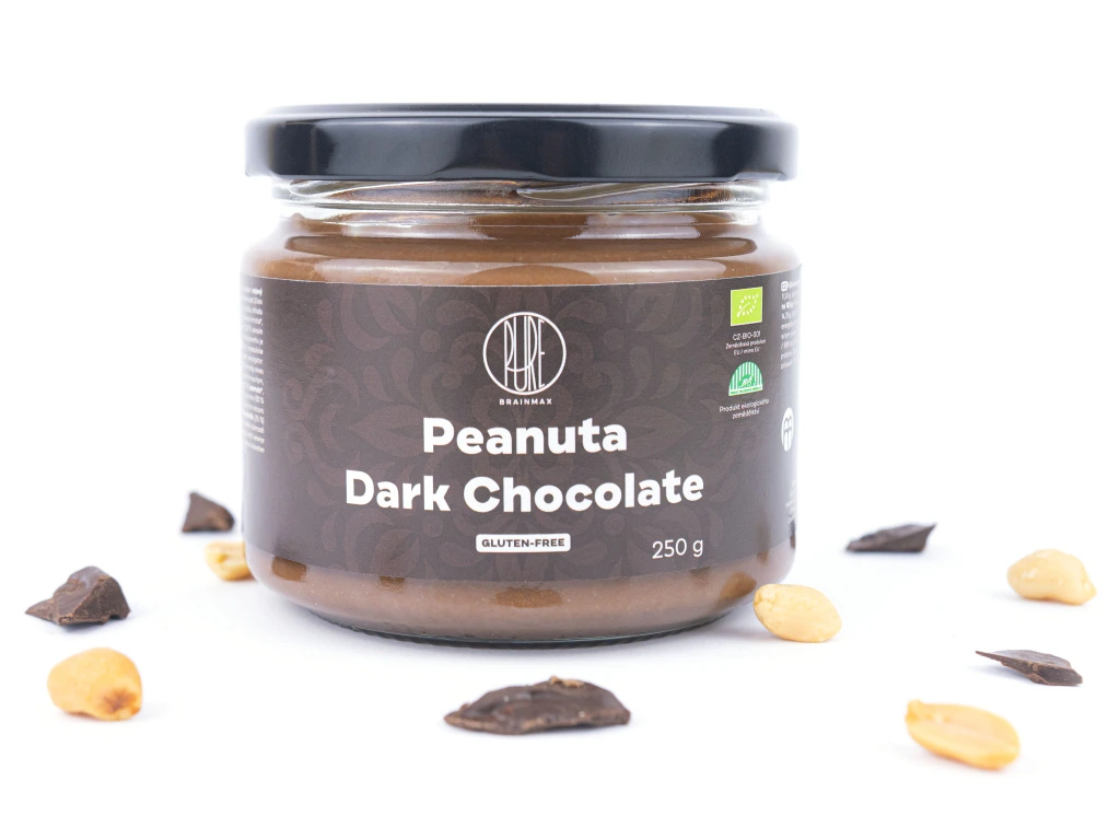 Arašídy jsou oblíbenou pochoutkou a výborně se snoubí s chutí čokolády. Proto jsme vytvořili BrainMax Pure Peanuta, Hořká čokoláda. Krém, který obsahuje BIO arašídy a BIO hořkou čokoládu prvotřídní kvality! Má jemnou konzistenci, intenzivní chuť a nenajdete v něm žádný palmový olej, škroby, umělé aroma ani konzervanty!