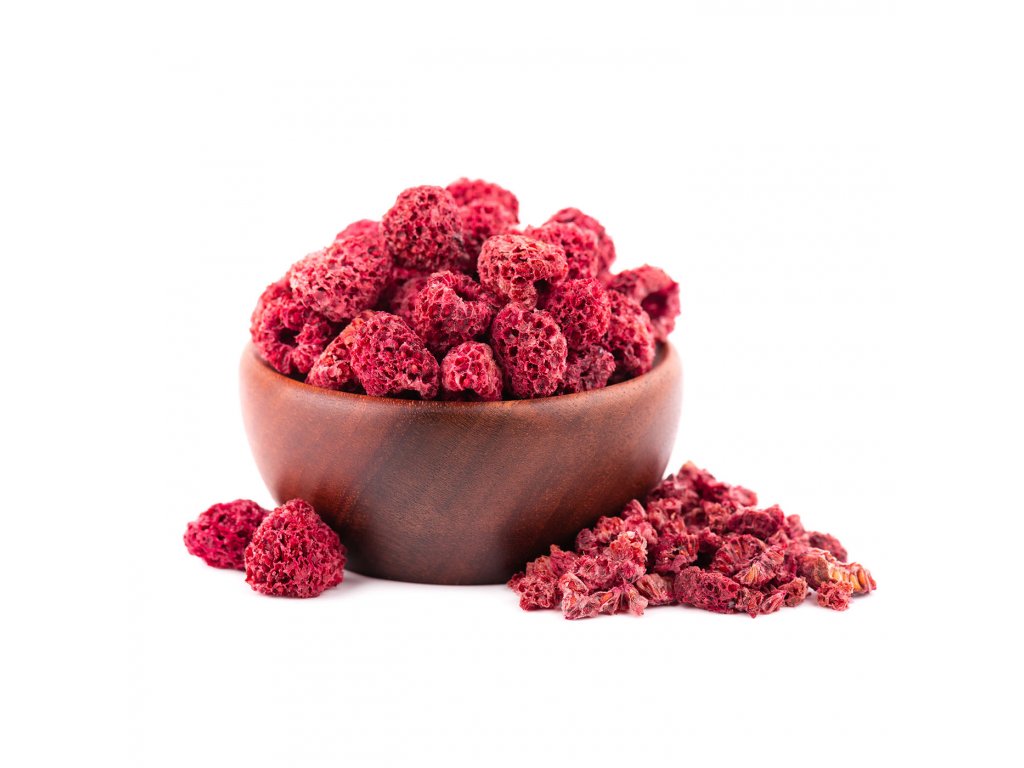 Díky lyofilizaci si maliny uchovávají veškeré vitamíny, minerály i vlákninu.