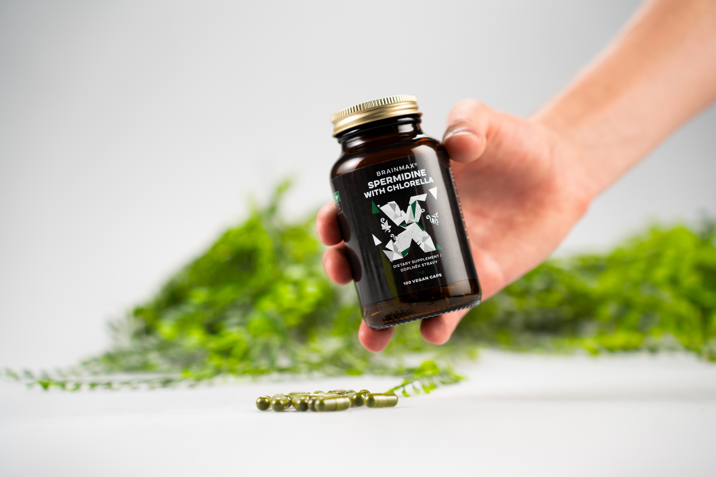 Složení: Spermidin, BIO chlorella. Rostlinná kapsle na bázi HPMC. Bez obsahu balastních látek.