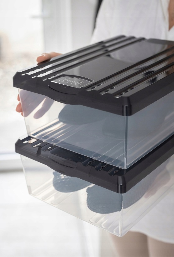 Sada se skládá ze 2 univerzálních kontejnerů na boty Mají také drážky ve víku, které umožňují snadné vysunutí Průhledné dno Vyrobeno z vysoce kvalitního plastu …