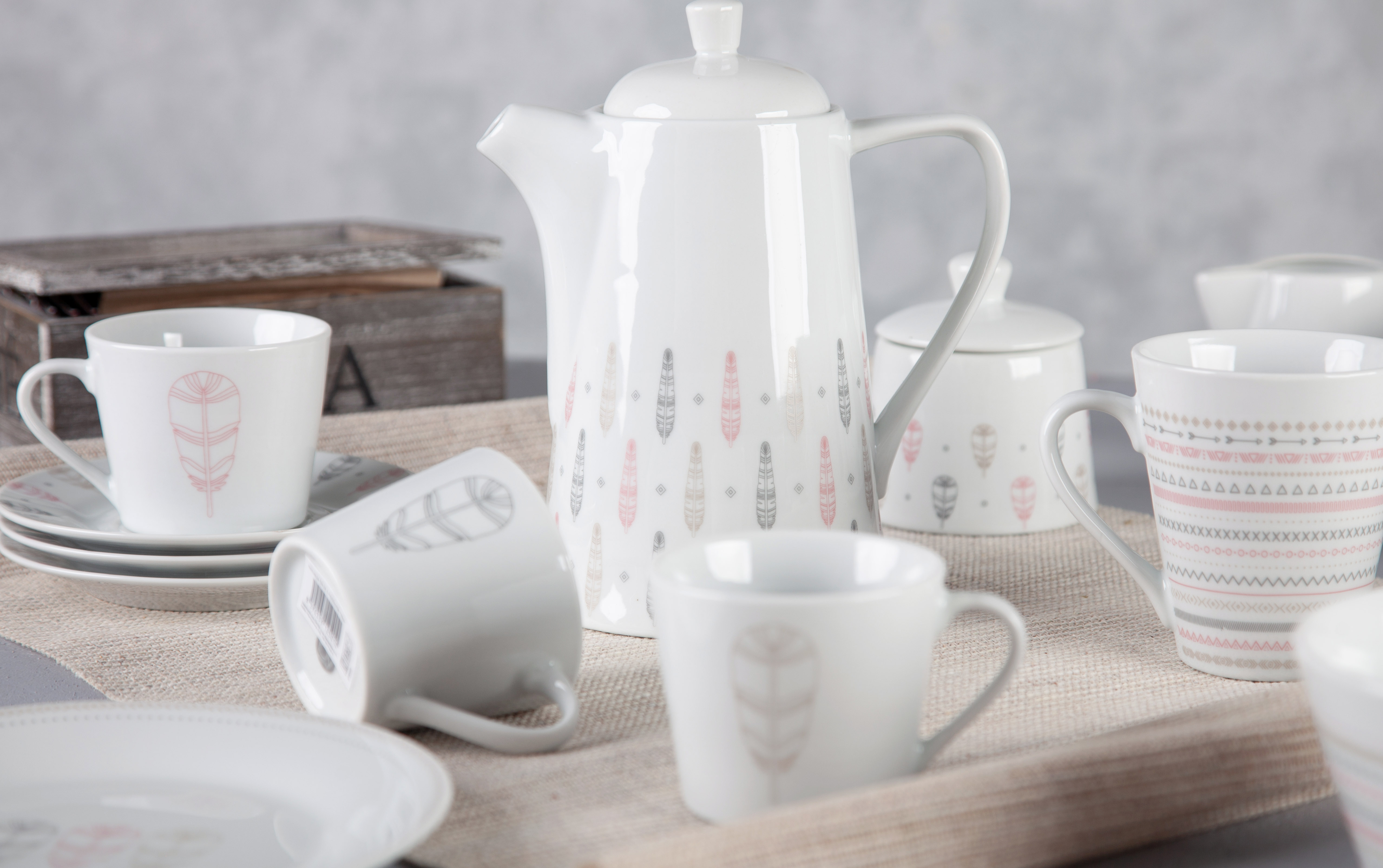 5dílná porcelánová souprava na čaj a kávu z kolekce Pírka od české značky by inspire…porcelán s českou duší.