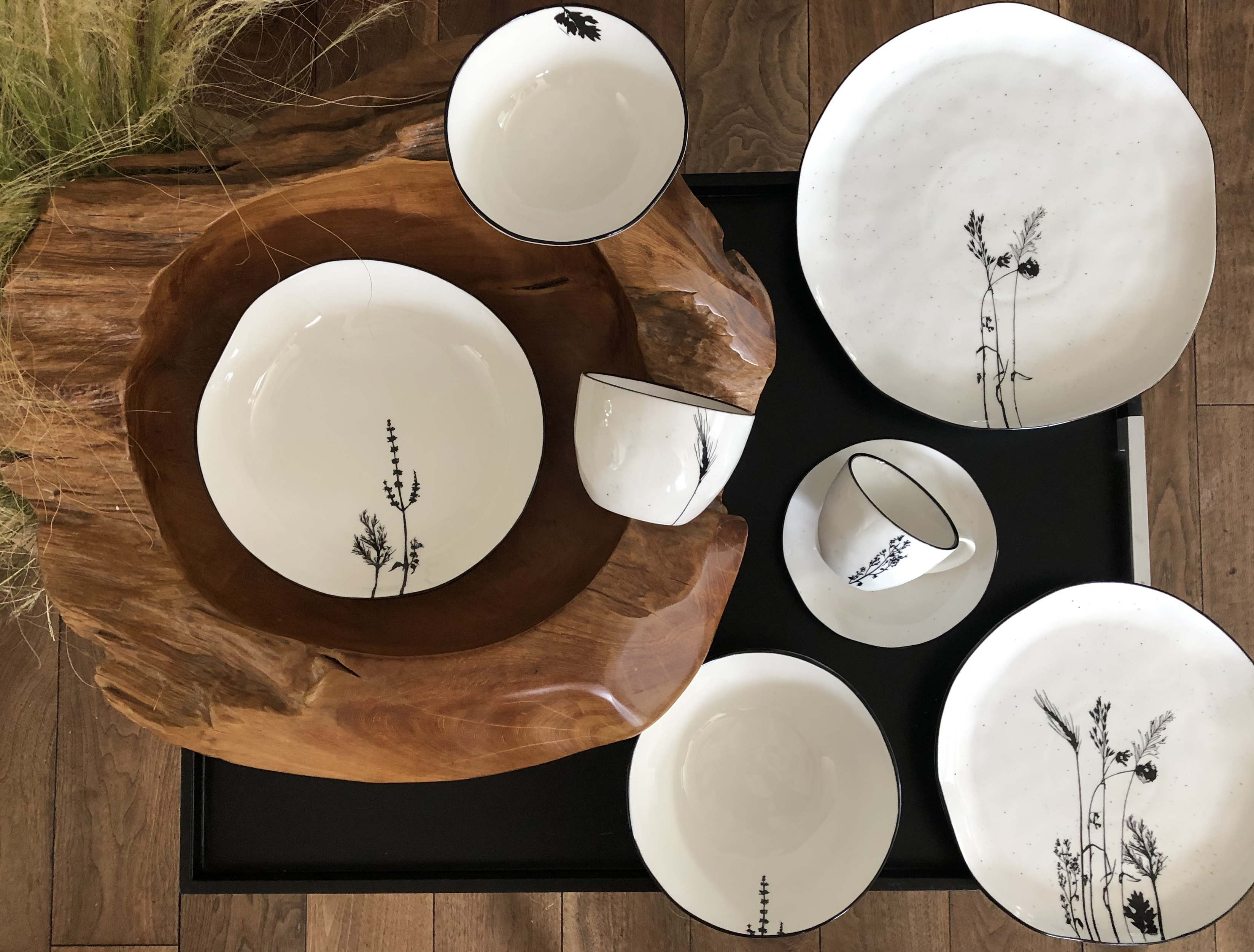 Kvalitní kostní porcelán, nepravidelný tvar, kropenatý povrch, okrajová černá linka a v tomto případě jednoduchý černý motiv klasů a polní trávy povyšuje kolekci Field od české značky by inspire…porcelán s českou duší na velmi elegantní a nadčasovou. Žně a sklizně vždy představovaly hojnost. Hojnost chceme mít i na svých stolech a vychutnat si dobré jídlo. Tato jídelní porcelánová sada je přímo stvořená pro servírování dnes tolik populárního domácího zdravého jídla.