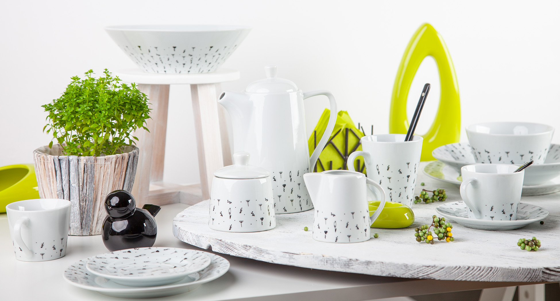 Rozeseté bylinky a malá luční kvítka na talíři či šálku. Jemný a milý motiv pro romantické duše vykouzlili designéři české rodinné firmy by inspire. I přesto, že je dekor v černé barvě, je tak jemně zpracovaný, že rozhodně nepůsobí tvrdě. Tato kolekce sluší moderním domácnostem, vyjímat se bude i na chatách a venkovských stavení.