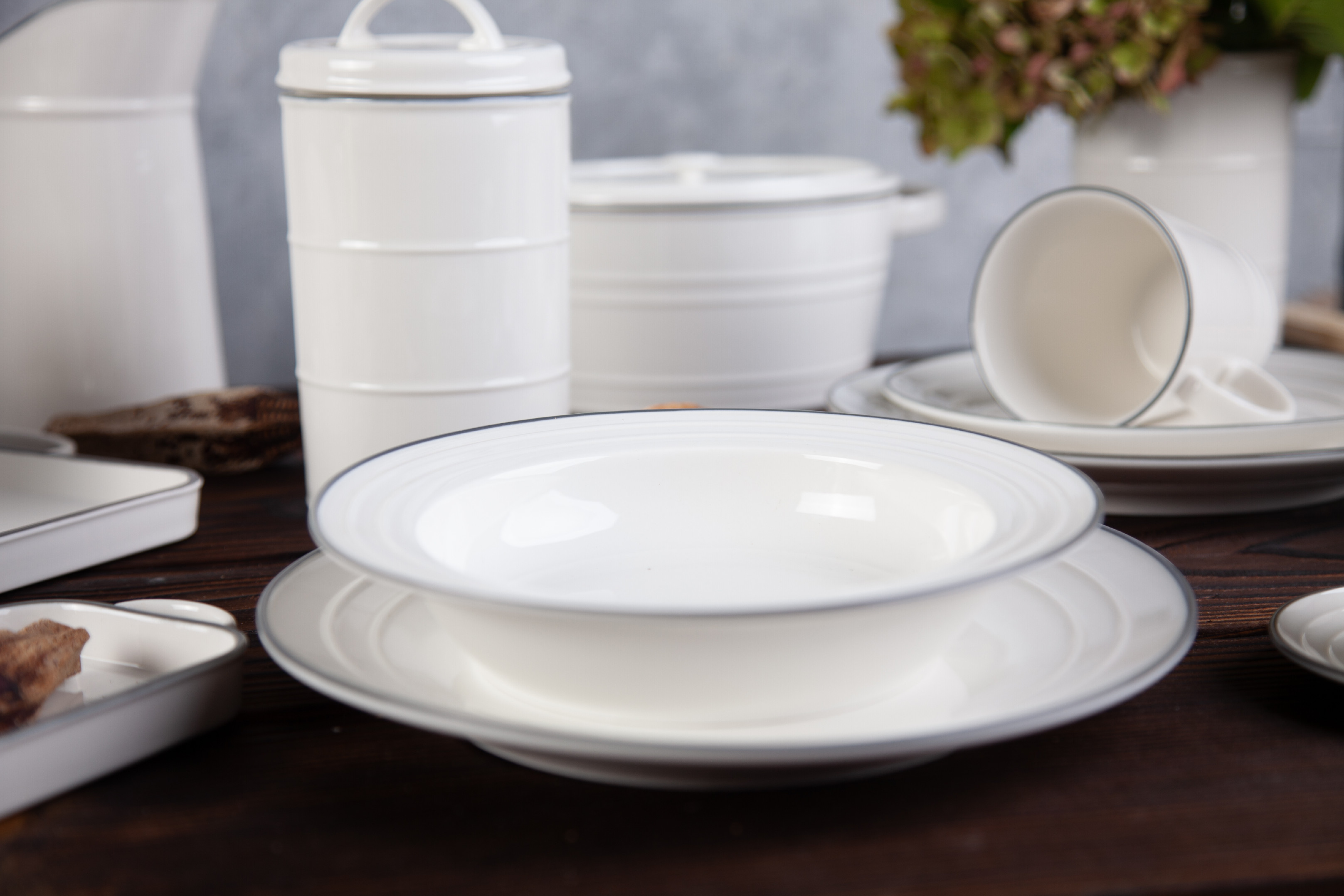 Design, který si pohrává s netradiční kombinací tvaru a materiálu. Tvar tak typický pro smaltované nádobí našich babiček a použitý materiál jakostní porcelán, působí mile a vlídně. Porcelánové mističky mají smetanový nádech a elegantní šedý proužek jen podtrhuje kontrast křehkosti a retro tvaru „kovového“ nádobí. Designové mističky v nadčasovém provedení. Moderní misky od české značky by inspire...porcelán s českou duší.