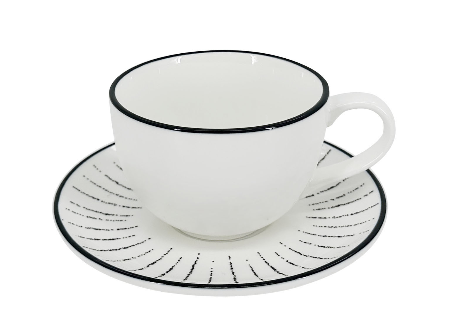Proměňte své espresso v moderní vizuální zážitek. Set 6 ks presso šálků s podšálky Alba Dash o objemu 90 ml představuje originální pojetí kávového minimalismu. Zatímco samotné šálky si zachovávají čistou eleganci bílého porcelánu zdobeného pouze tenkou černou linkou na okraji, podšálky jsou oživeny dynamickým motivem černých paprsků (dash). Tato kombinace vytváří na stole zajímavý kontrast, který je pro kolekci Alba Dash typický.