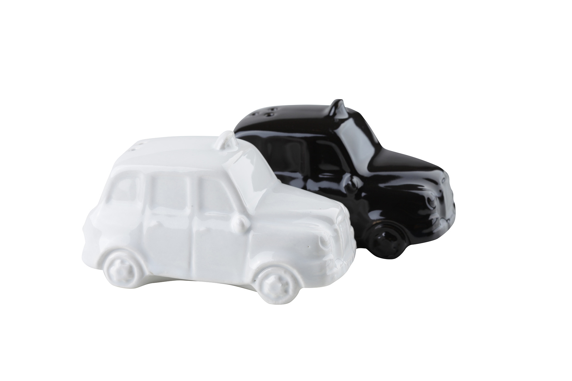 Slánka a pepřenka na Váš stůl ve tvaru autíček. Pro milovníky aut nebo pro automechaniky. Dvě auta jako sůl a pepř v nadčasové černo bílé kombinaci barev.