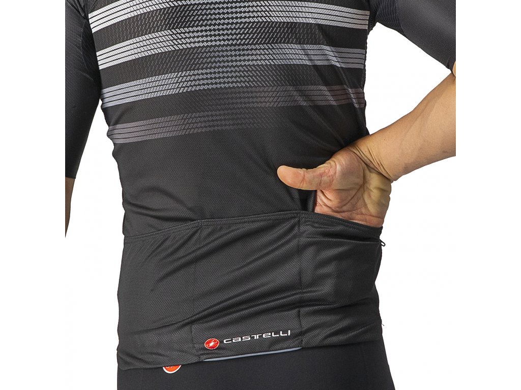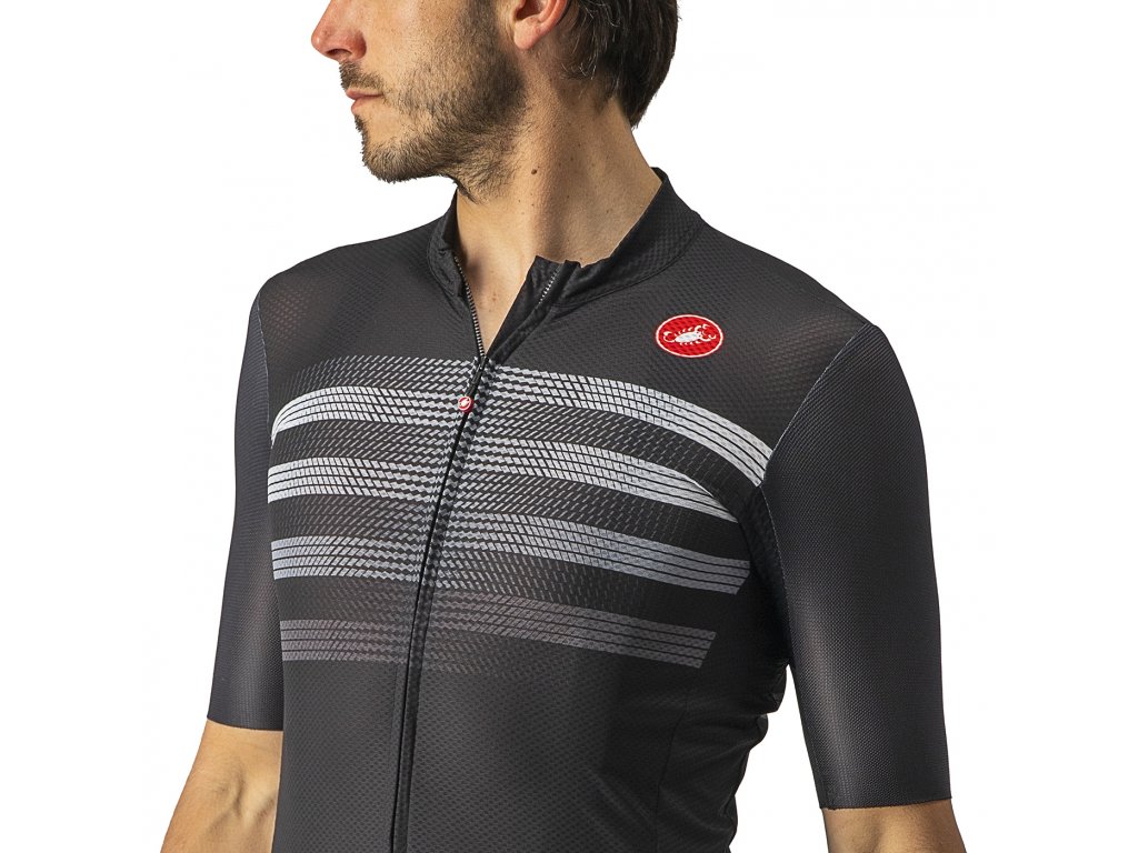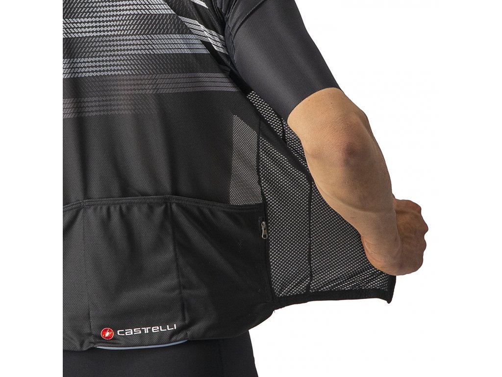 Ideálny univerzálny dres pre vaše vytrvalostné jazdy, poskytujúci komfort, praktické vlastnosti a excelentný odvod potu. Počas dlhej jazdy musí dres zvládnuť všetko - ponúkať pohodlie, nosnosť, široký teplotný rozsah s ochranou pred slnkom i dobrú aerodynamiku. Tento dres kombinuje všetky tieto požiadavky. Pohodlie pochádza z priliehavého strihu a vďaka tkanine Velocity zostanete stále v suchu. Jeho univerzálnosť spočíva v dobrej priedušnosti materiálu, no zároveň dostatočnej pevnosti. Extra pohodlie prinášajú detaily ako je chlopňa pod zipsom na ochranu krku a strečové sieťované rukávy s plochými okrajmi, ktoré nikdy netlačia či sťahujú. Benefitom sú vrecká so zipsom umiestnené na zadnej strane trička s logom Castelli. Vaše dlhé ale i krátke jazdy budú rýchlejšie s menšou námahou, pretože tento dres je tiež vysoko aerodynamický, najmä v oblasti rukávov a ramien, ktoré obsahujú rovnakú tkaninu, aká sa používa na pretekárskych dresoch na profesionálnej úrovni. Dres Endurance Pro je skutočne majstrom všetkého.