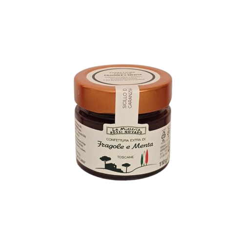 Složení: Jahody 60 %, cukr, citronová šťáva, máta, ovocná pektina.