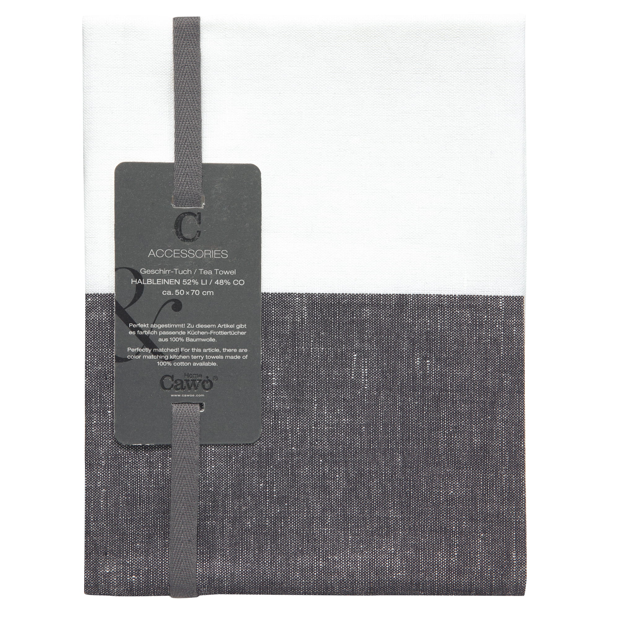 CAWÖ Duo 535 Kuchyňská utěrka 50x70 cm černá/bíláKolekce Cuisine Duo od CAWÖ přináší oboustranné kuchyňské utěrky v hravých barevných kombinacích. Dvě různobarevné strany — dvojnásobný styl v jedné utěrce 50×70 cm ze 100% bavlny.Tento kuchyňský textil v barvě černá/bílá přináší styl a funkčnost do každé kuchyně. Barva je odolná vůči praní.Precizní výroba v Německu a použití prémiové bavlny jsou zárukou dlouhé životnosti a stálé kvality.Technické parametryBarva: černá/bíláDostupné rozměry: utěrka 50x70 cmMateriál: 100% bavlnaVyrobeno: NěmeckoÚdržba: praní na 60 °C, sušení v sušičce, nebělit, nežehlitKuchyňský textil CAWÖ je volbou pro ty, kdo si potrpí na kvalitu, trvanlivost a styl.