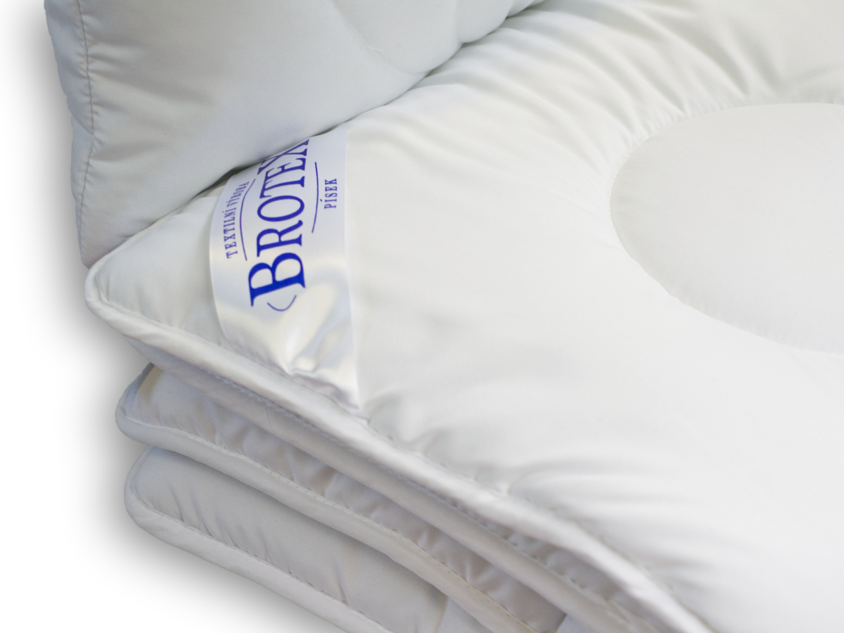 Souprava dětská Luxus plus, přikrývka 90x135cm a polštář 45x60cmbarva : bíláRozměr : přikrývka 90x135cm + polštář 45x60cmSložení: povrch - 100% polyester (microfibre),výplň přikrývky - 100% polyester ( dutinkové komorové duté vlákno pojené) 300g/m2výplň polštáře – 100% polyester – ( kuličkové duté vlákno )Teplota praní: 95°, sušení v bubnové sušičce na sníženou teplotu.Dětská souprava Luxus obsahuje středně teplou celoroční přikrývku o gramáži 300g/m2. Polštářek obsahuje protialergické kuličkové duté vlákno, které je určeno specielně pro výrobu protialergických polštářů. Polštáře se díky těmto kuličkám dají snadno naklepat a nemění tvar. Kuličkové vlákno je uvnitř prošitého korpusu, který je prošitý ( látka, rouno, netkaná textilie ). Netkaná textilie je velmi důležitým materiálem u polštářů. Hlavní funkcí tohoto materiálu je zabránění spojení rouna s kuličkovým vláknem. Polštář je opatřen zipovým uzávěrem, pro možnost doplnění či odebrání části výplně dle potřeby.Povrchovým materiálem je 100% polyester - microfibre, velmi jemný na omak