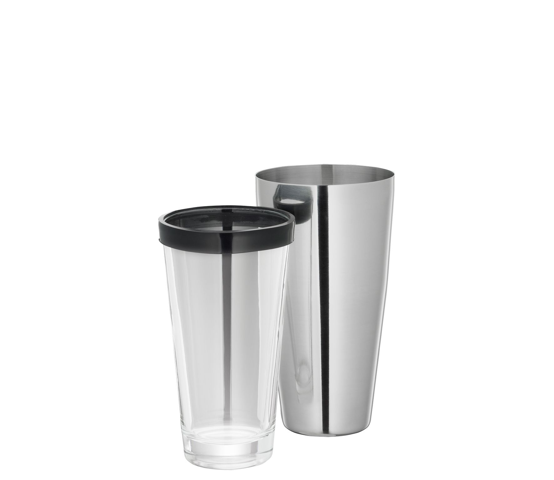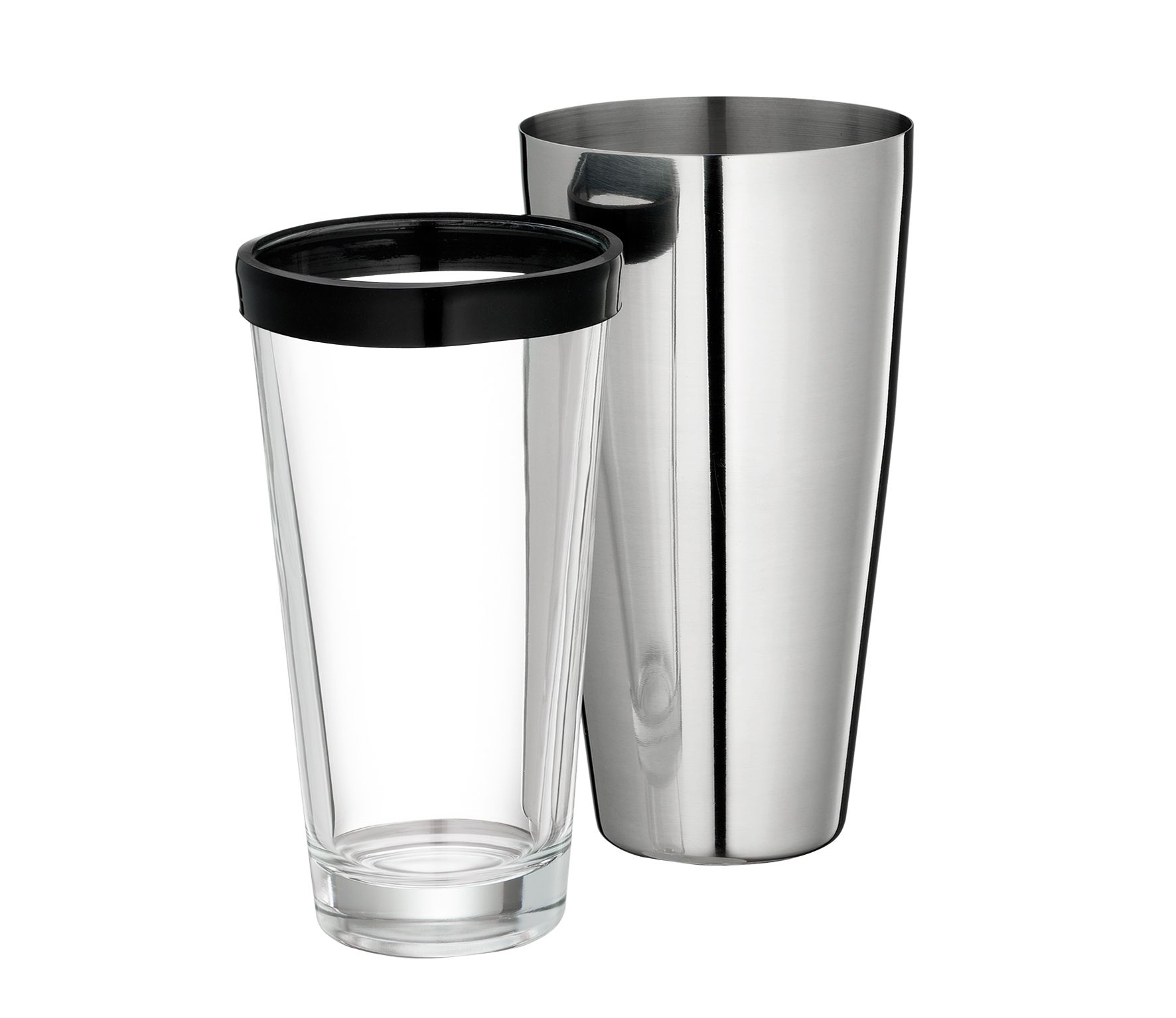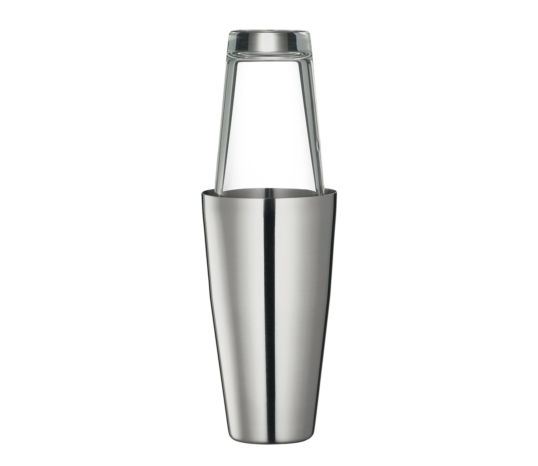 Barmanský dvoudílný shaker vyrobený z nerezové oceli a skla.