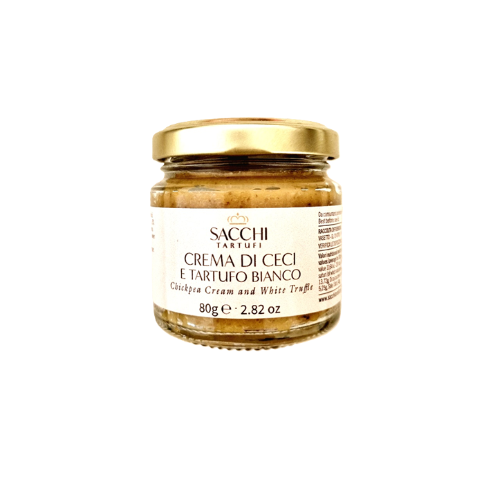 | Složení | cizrna 75 %, slunečnicový olej, bílý lanýž drahocénny (Tuber magnatum Pico), sůl, aroma, rozmarýn, česnek, pepř. |