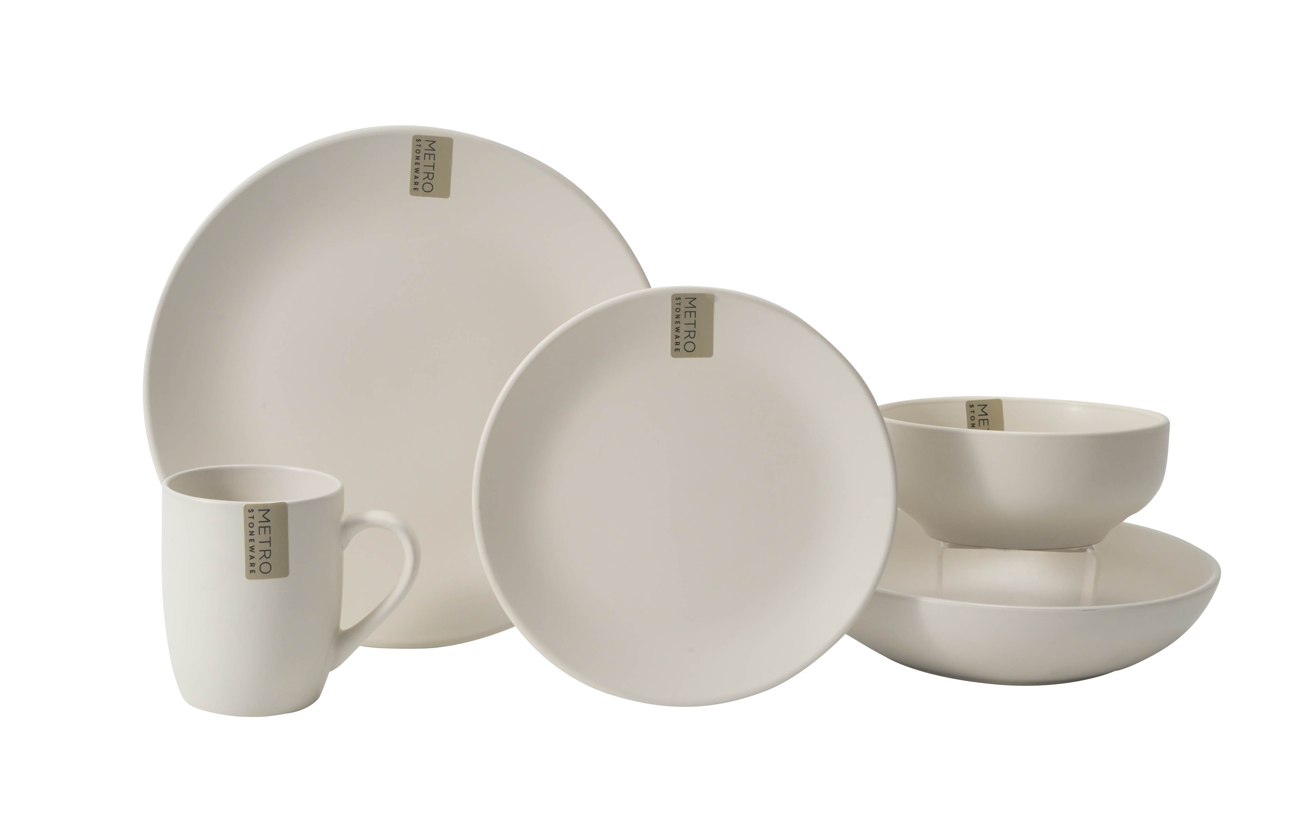 Kolekce Metro zahrnuje kulaté mělké, hluboké a dezertní talíře, misky a hrnky ve smetanové a šedé barvě, které lze vzájemně kombinovat a vytvářet tak stylové a originální stolovací sady.