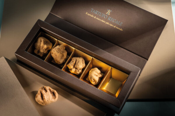 Tartufo Regale je jedinečný produkt v odvětví čokolády, který věrně napodobuje tvar a barvu pravého lanýže, takže ani „Trifulau“ (hledači lanýžů) jej nedokážou …