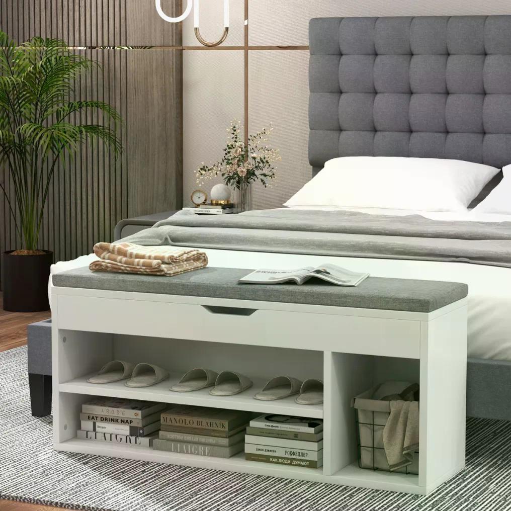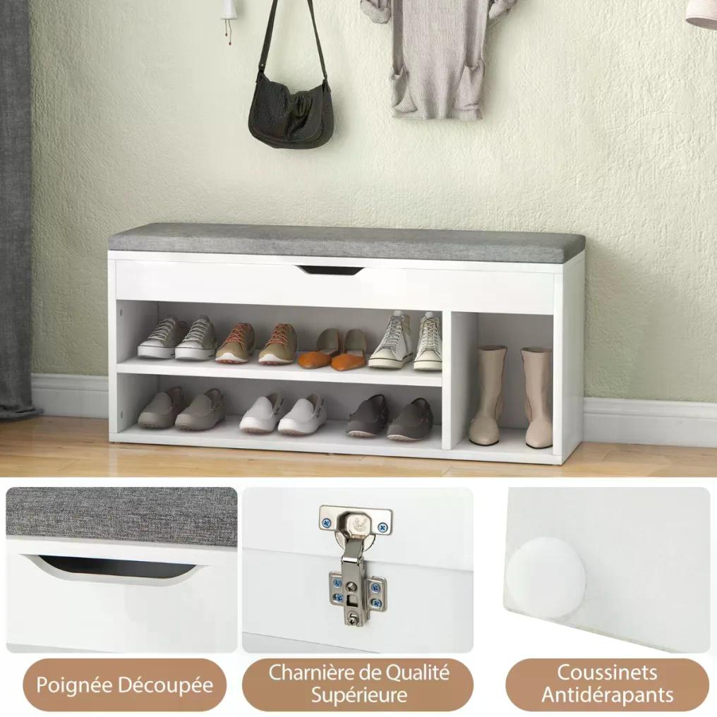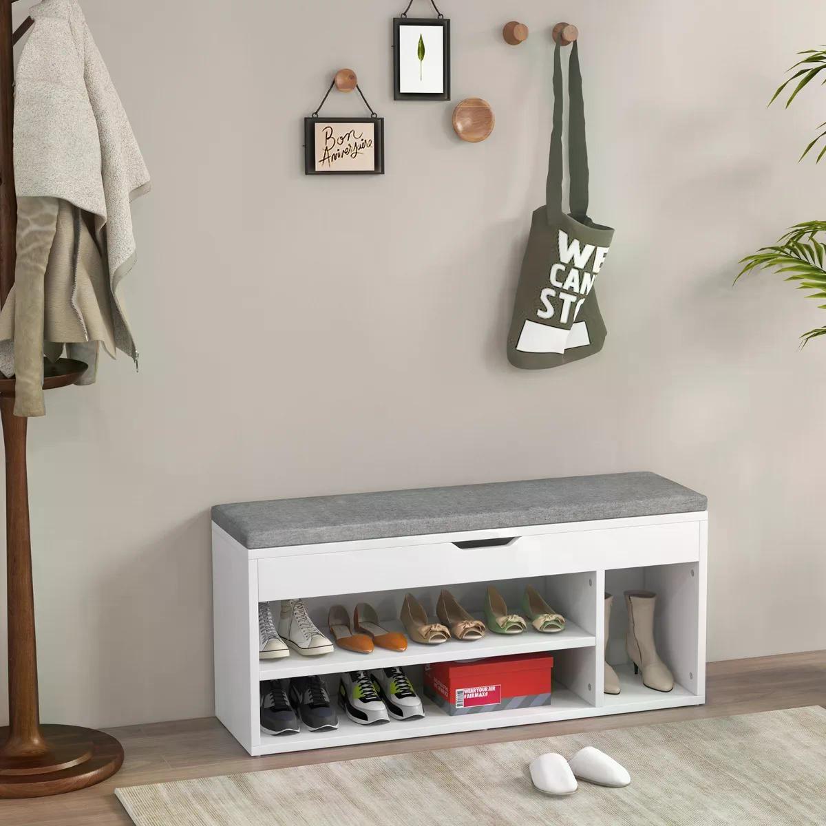 Costway Botník s polstrovanou lavicí a policemi, bílo-šedý JV11726GR