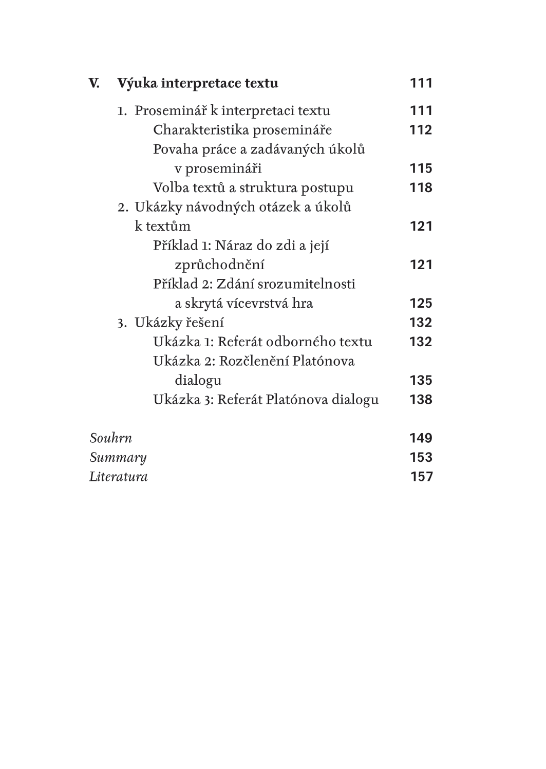 Předkládaná publikace přináší elementární uvedení do práce s textem a interpretace. Je určena především začínajícím vysokoškolským studentům humanitních oborů a filosofie, avšak také učitelům na gymnáziích a středních školách, kteří své žáky připravují na vysokoškolské studium, a případně i vysokoškolským učitelům, kteří do práce s textem a zásad interpretování své studenty na začátku studia uvádějí.