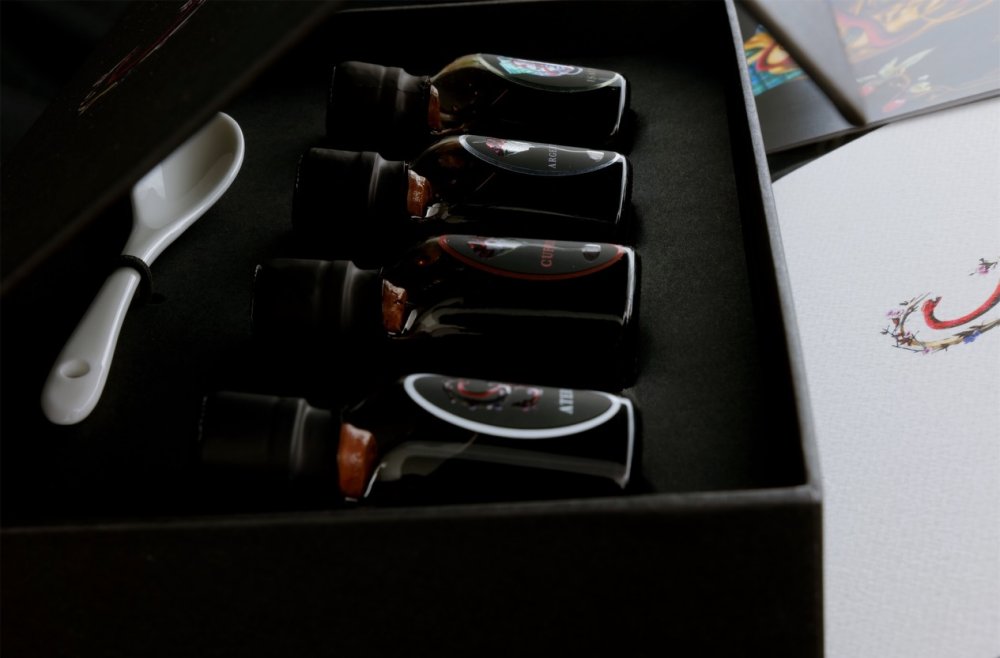 Our Eternal Box se čtyřmi druhy octů je určen pro ty, kteří se chtějí vydat na cestu poznání celou řadou Cerasus Sanguine.
