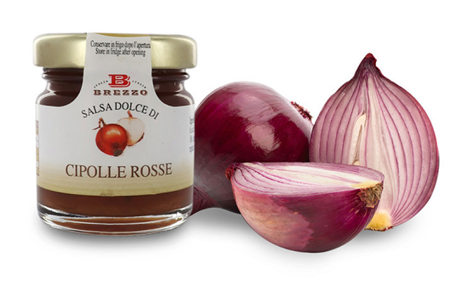 Sladká omáčka z červené cibule: červená cibule (110 g x 100 g), třtinový cukr, regulátor kyselosti: kyselina citronová.
