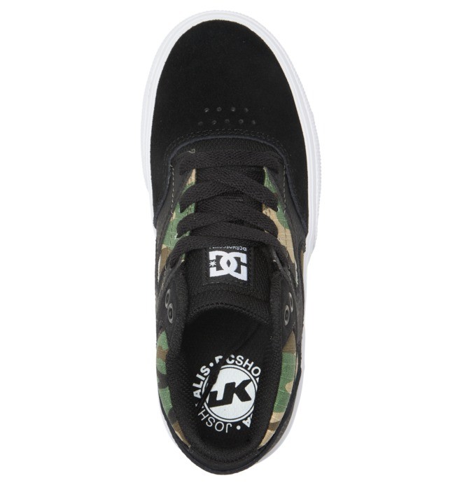 Chlapčenské dizajnové topánky DC Kalis vyrobené zo semišu a kože, navrhnuté spolupráci so značkou Josh Kalis. Majú vulkanizovanú konštrukciu pre maximálnu odolnosť, gumovú podrážku pripravenú na náraz a sieťovanú podšívku pre priedušnosť.