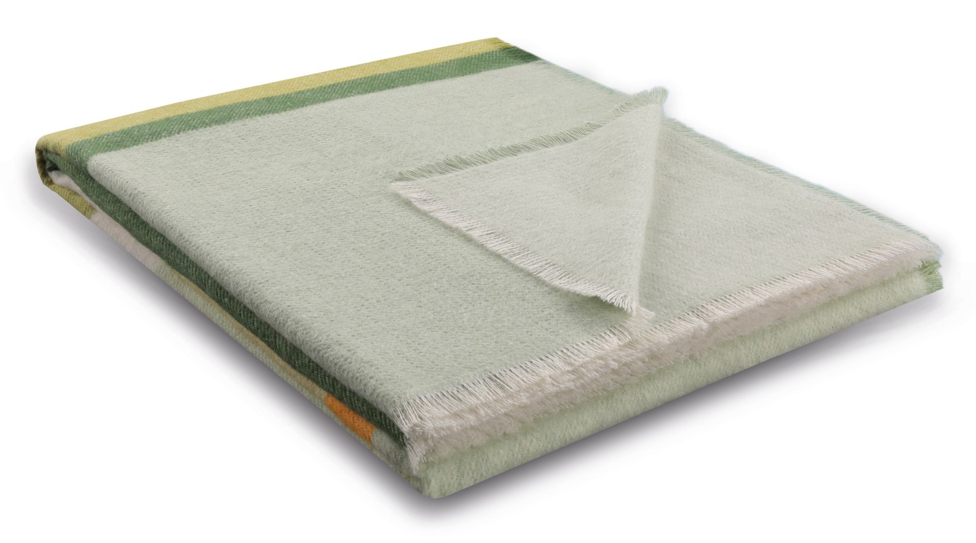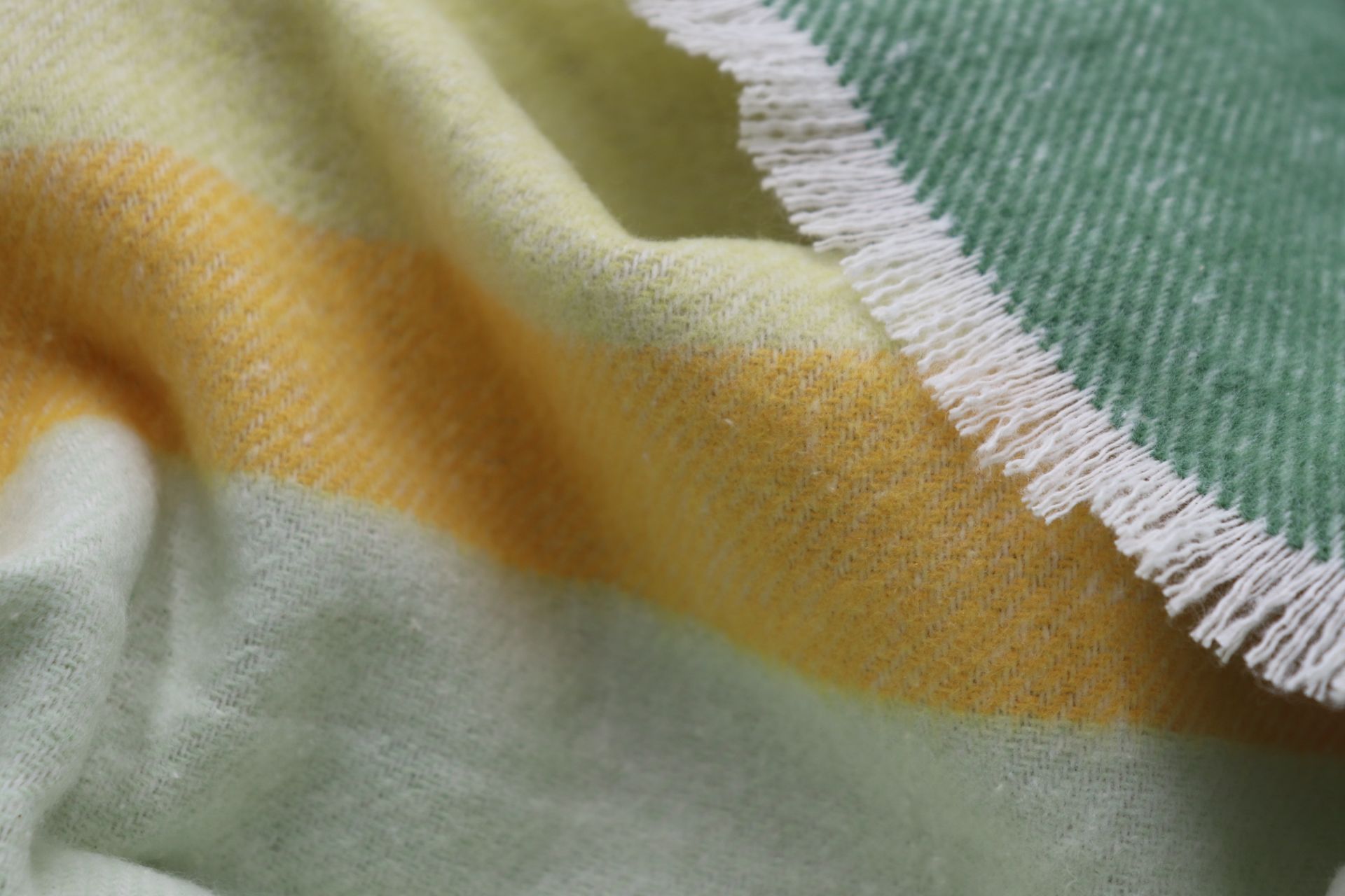 Velikost: 130 x 170 cm Materiál: 80 % bavlna, 20 % polyakryl Barva: jemné odstíny zelené, bílé a slunečně žluté Gramáž: cca 240 g/m² Zakončení: krátké třásně Vyrobeno v Itálii Certifikace: GRS (Global Recycled Standard)