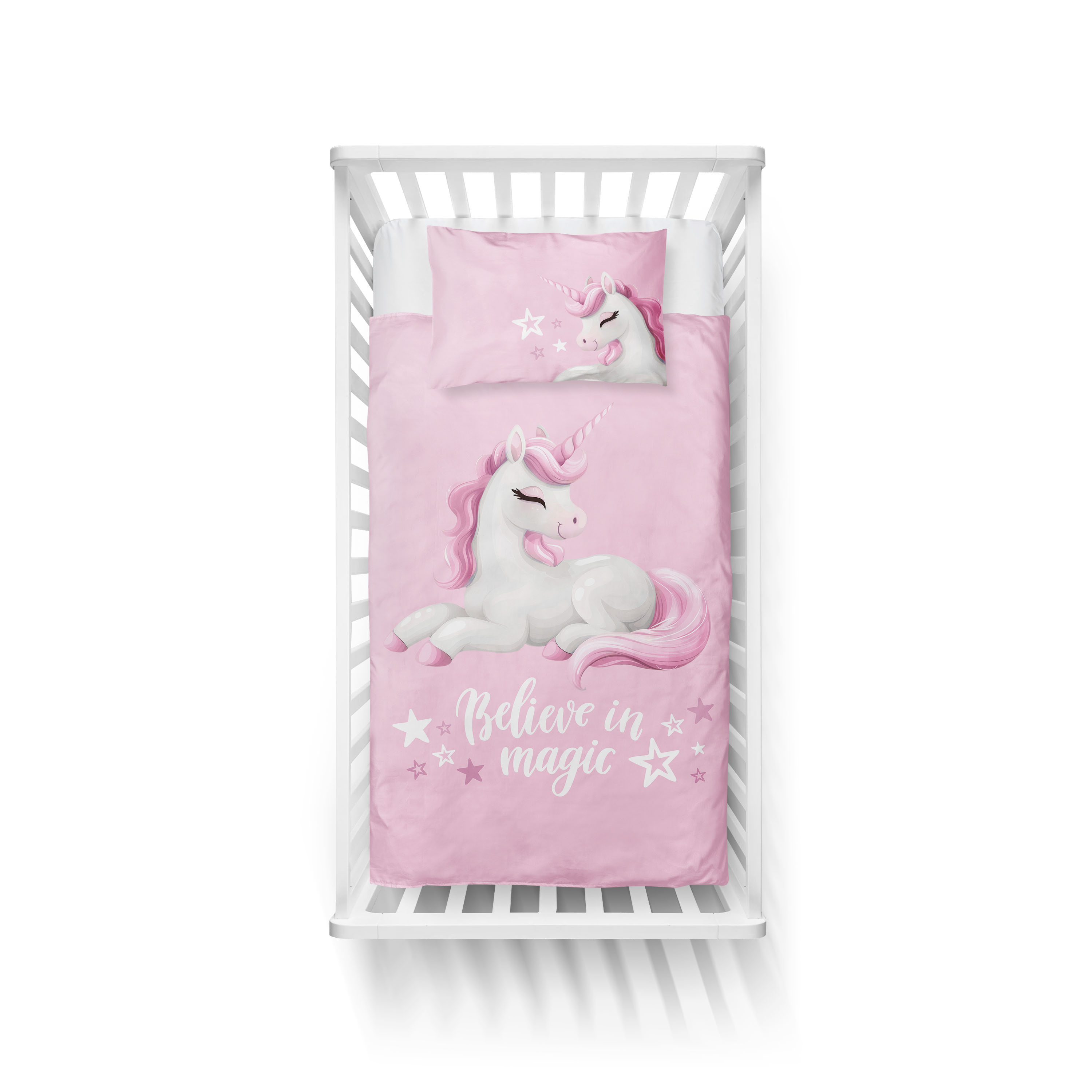 Povlečení do postýlky pro holčičku s motivem magického jednorožce. Toto povlečení se stane nejen stylovým doplňkem dětského pokoje, ale i zárukou pohodlného a klidného spánku.