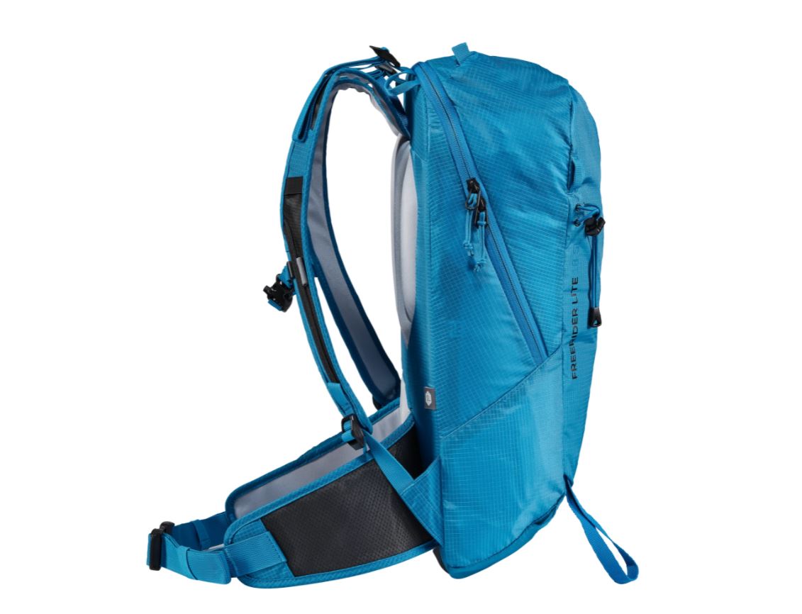 Ľahký batoh Freerider Lite od značky Deuter je každým kúskom prispôsobený na skialp a freeride. Je odľahčený, nie však na úkor vášho pohodlia. Polstrovaný chrbát okolo chrbtice, v oblasti lopatiek a bedier je podporený U výstužou. Tá rozloží váhu celého nákladu tak, aby chránila vašu chbrticu pred tlakovým zaťažením. Vrecko na lavínovú výbavu, pútka na lyže, palice, cepín a lano sú nevyhnutnou súčasťou. Držiaky na snowboard a snežnice sa dajú schovať, aby neprekážali.