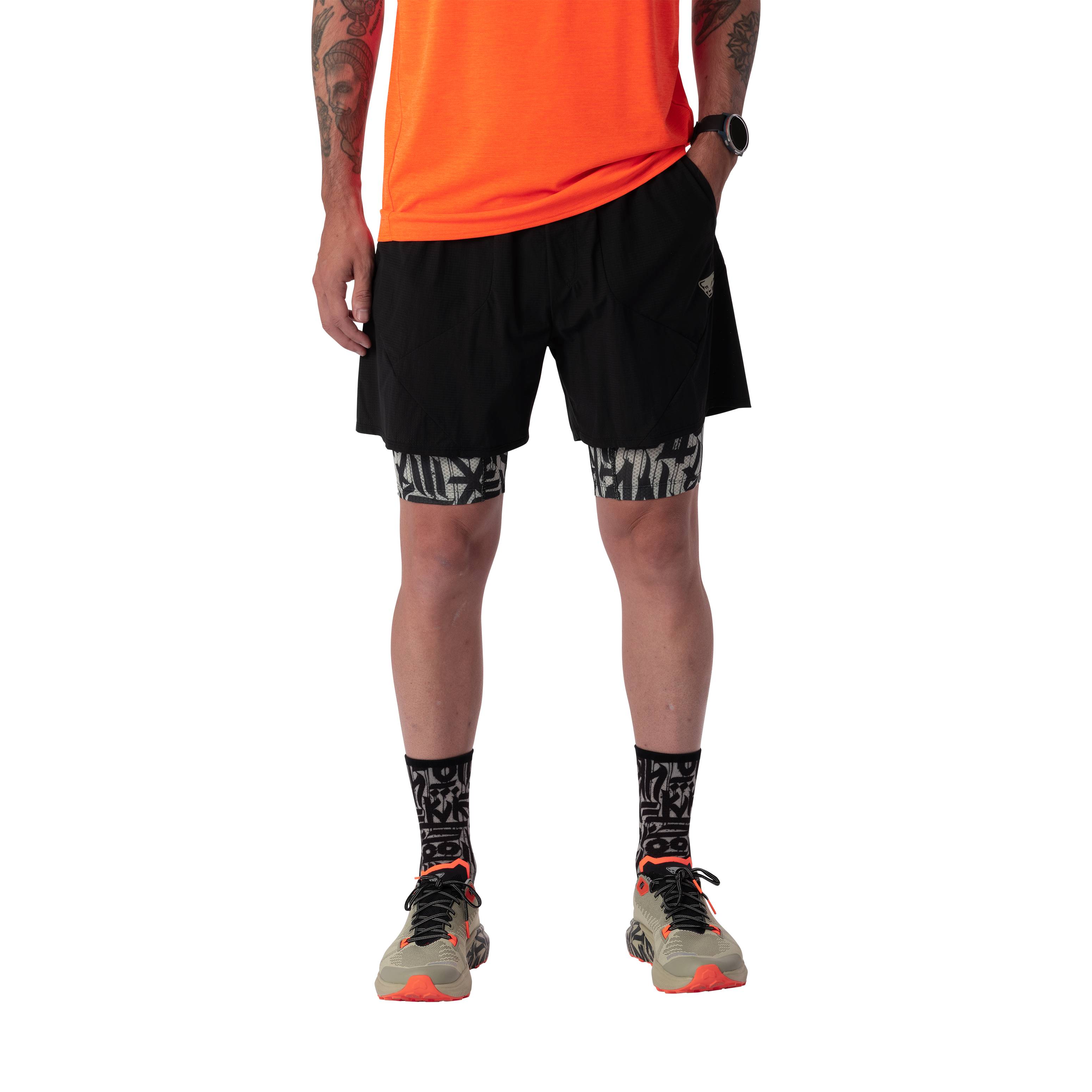 Pánske šortky Trail 2in1 Shorts sú navrhnuté pre náročné bežkyne, ktoré hľadajú komfort a funkčnosť v jednom. Vďaka premyslenému strihu 2v1 kombinujú priliehavé vnútorné kraťasy z priedušnej sieťoviny s voľnými, ľahkými vrchnými šortkami, čím zabezpečujú ideálnu rovnováhu medzi podporou a voľnosťou pohybu. Vnútorné kraťasy efektívne odvádzajú pot od pokožky a zabraňujú nepríjemnému treniu, zatiaľ čo silikónové prvky pomáhajú udržať všetko na svojom mieste aj pri intenzívnom behu. Vonkajší materiál s 4-smerným strečom a mikroperforáciou zabezpečuje výbornú priedušnosť a ventiláciu, takže sa budeš cítiť komfortne aj počas horúcich dní. Šortky ponúkajú viacero praktických vreciek – vrátane zadného vrecka na zips, bočného vrecka na mobil vo vnútorných kraťasoch a dvoch predných otvorených vreciek. Elastický pás s možnosťou nastavenia zaručuje pevné a pohodlné držanie bez skĺzavania. Moderný dizajn s výraznou potlačou dodáva šortkám štýlový vzhľad.