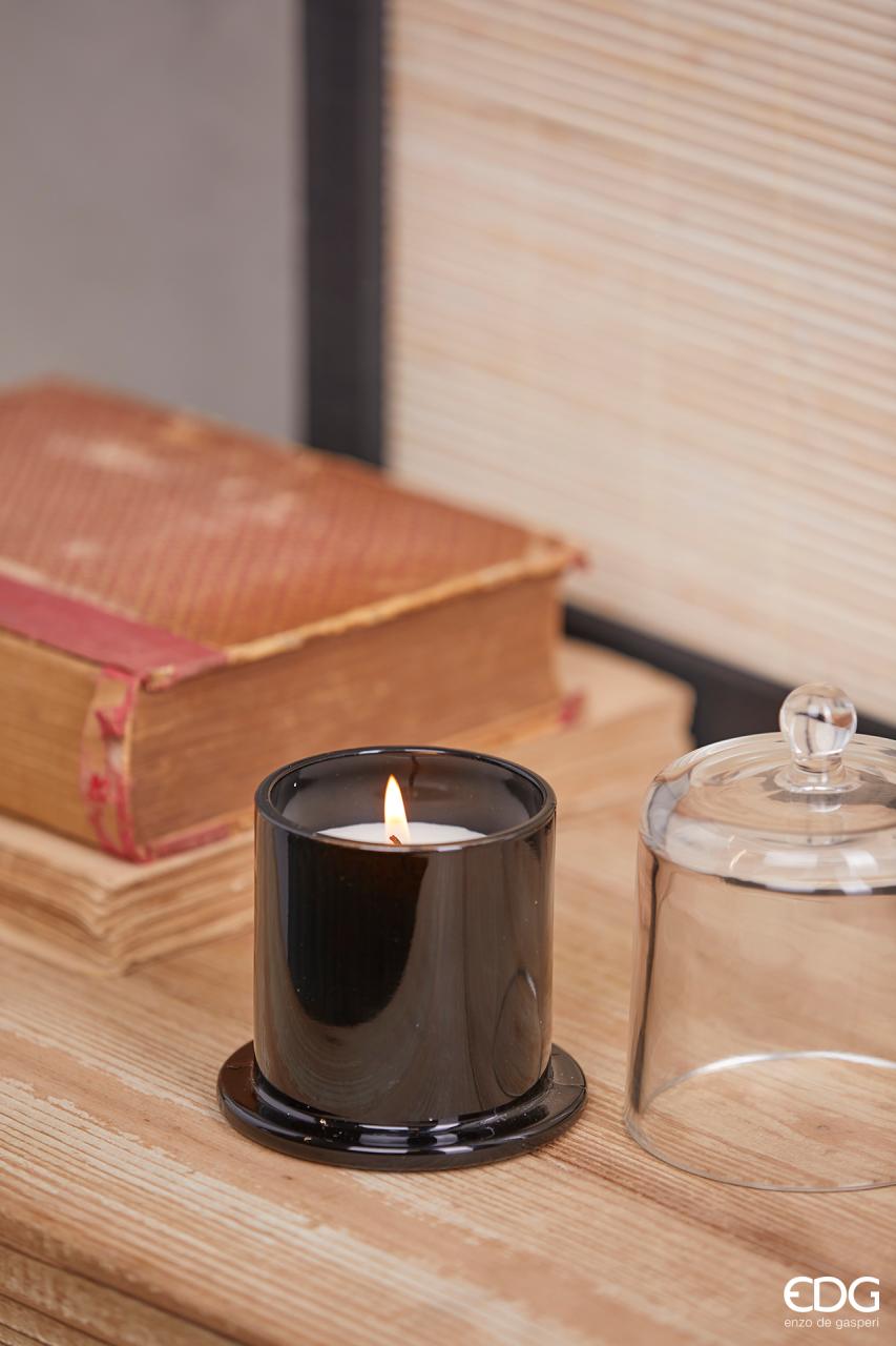 EDG Svíčka ve skle s víkem, barva černá, vůně šampaňského, 12 x 9 cm