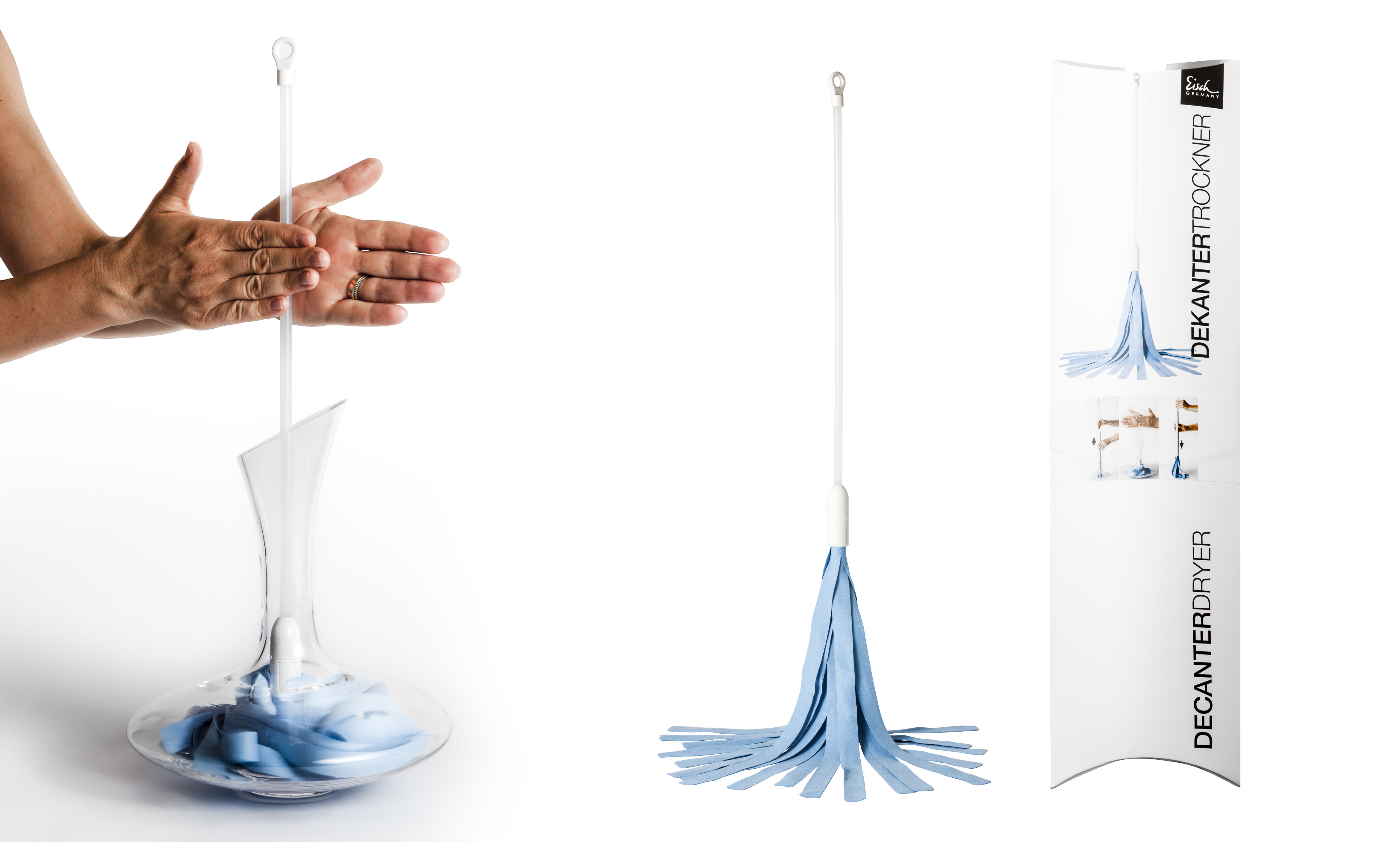 SNADNÉ POUŽITÍ: Sušička se vkládá do karafy přiloženou trubičkou a posouvá se uvnitř karafy otáčením mezi dlaněmi. Extrémně odolné, savé mikrovlákno bez žmolků (70 % polyesterové mikrovlákno, 30 % polyamidové mikrovlákno) se dostane do každého místa v karafě.