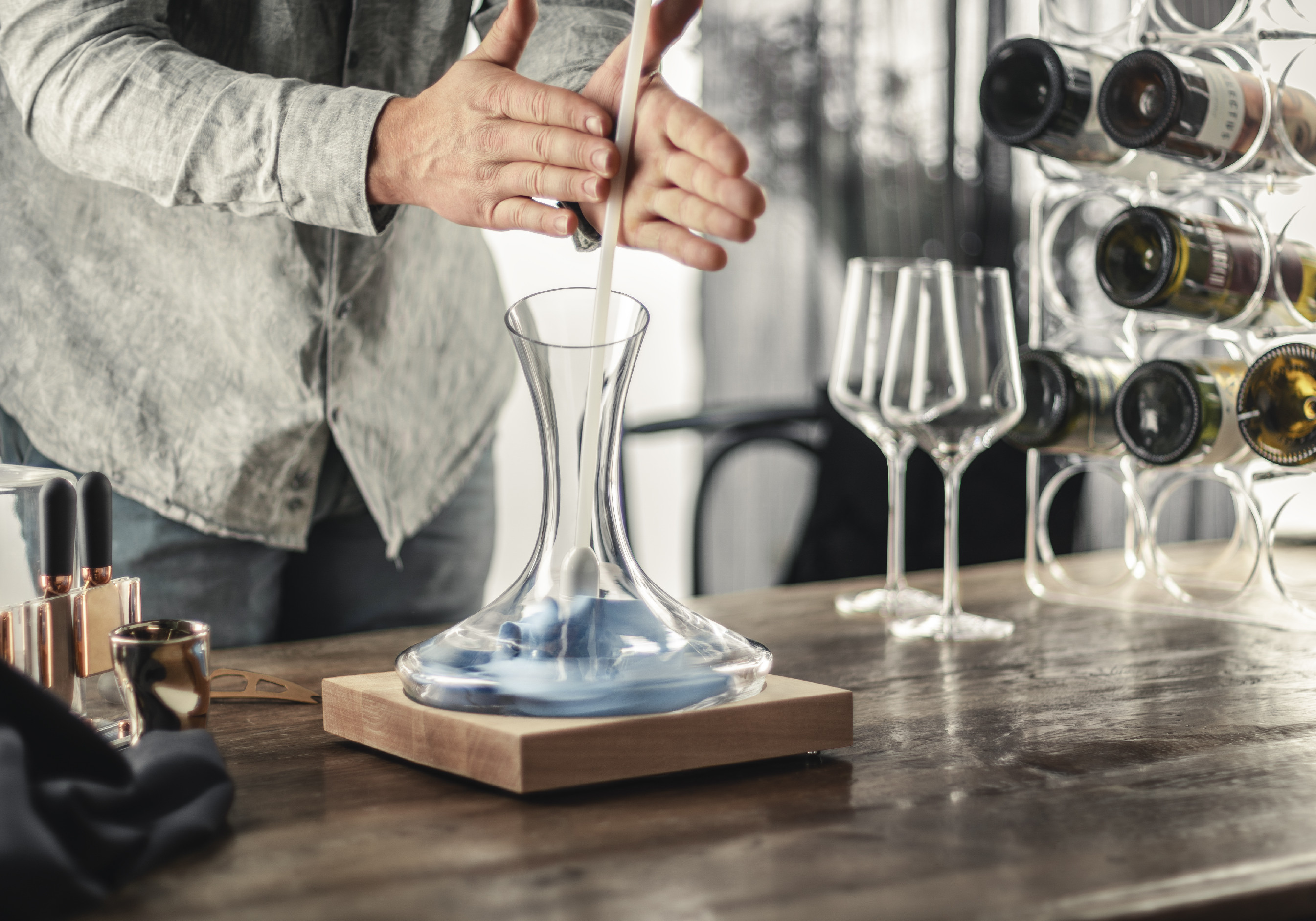 Čistič je zabalen v dárkové krabici s potiskem, a proto je skvělým dárkem pro všechny, kteří chtějí zachovat zářivý lesk svých dekantérů.