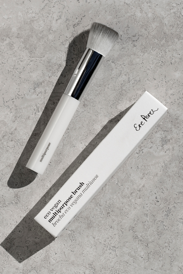 Všechny štětce Ere Perez jsou veganské, čili na nich nenajdete štětiny pocházející ze zvířat. Štětiny jsou syntetické nylonové a jsou vhodné i pro citlivou pokožku. Díky nylonovým štětinám se štětec snadno čistí. Rukojeť je vyrobena z kukuřičné pryskyřice, což je udržitelná alternativa k plastu, která je obnovitelná a biologicky odbouratelná.