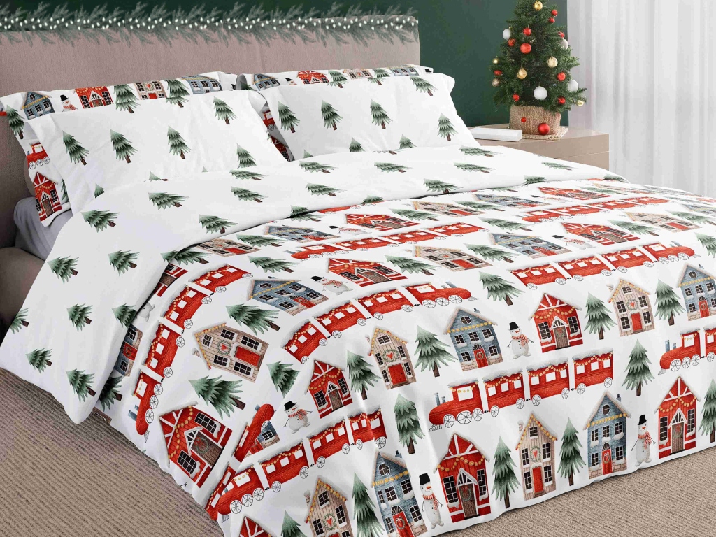 FARO Vánoční bavlněné povlečení 220x200 + 2 x 70x80 cm - Vánoční městečko