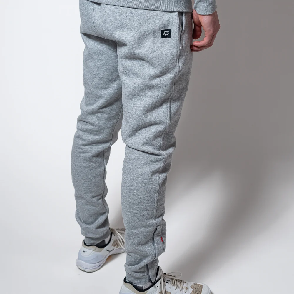 Pohodlné fleesové sportovní tepláky vhodné pro sport i volný čas. Dostupné v šedé barvě.