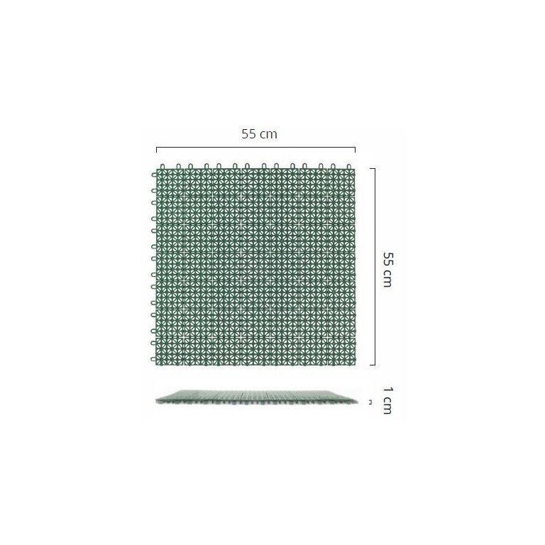 Protiskluzová, odolná sportovní podlaha Florbal4u Sport Floor s drenážními otvory s plochou 1,21 m2. Přes povrch velmi snadno proteče voda a povrch zůstává suchý a snadno se čistí. Jednoduchá instalace díky zámku a flexibilita dlažby umožňuje její použití na téměř jakýkoliv podklad např. trávník, písek, jíl, cement nebo jiný. Plastové dlaždice jsou velmi lehké a jednoduché na přepravu a lze je opakovaně rozebrat a použít na novém místě.