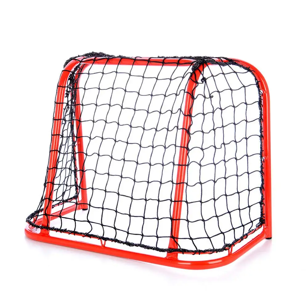 Síť materiál: POP šňůra černá-tloušťka 3 mm, velikost oček 4,5 x 4,5cm.Materiál branky: ocel, PU komaxit v červené barvě.
