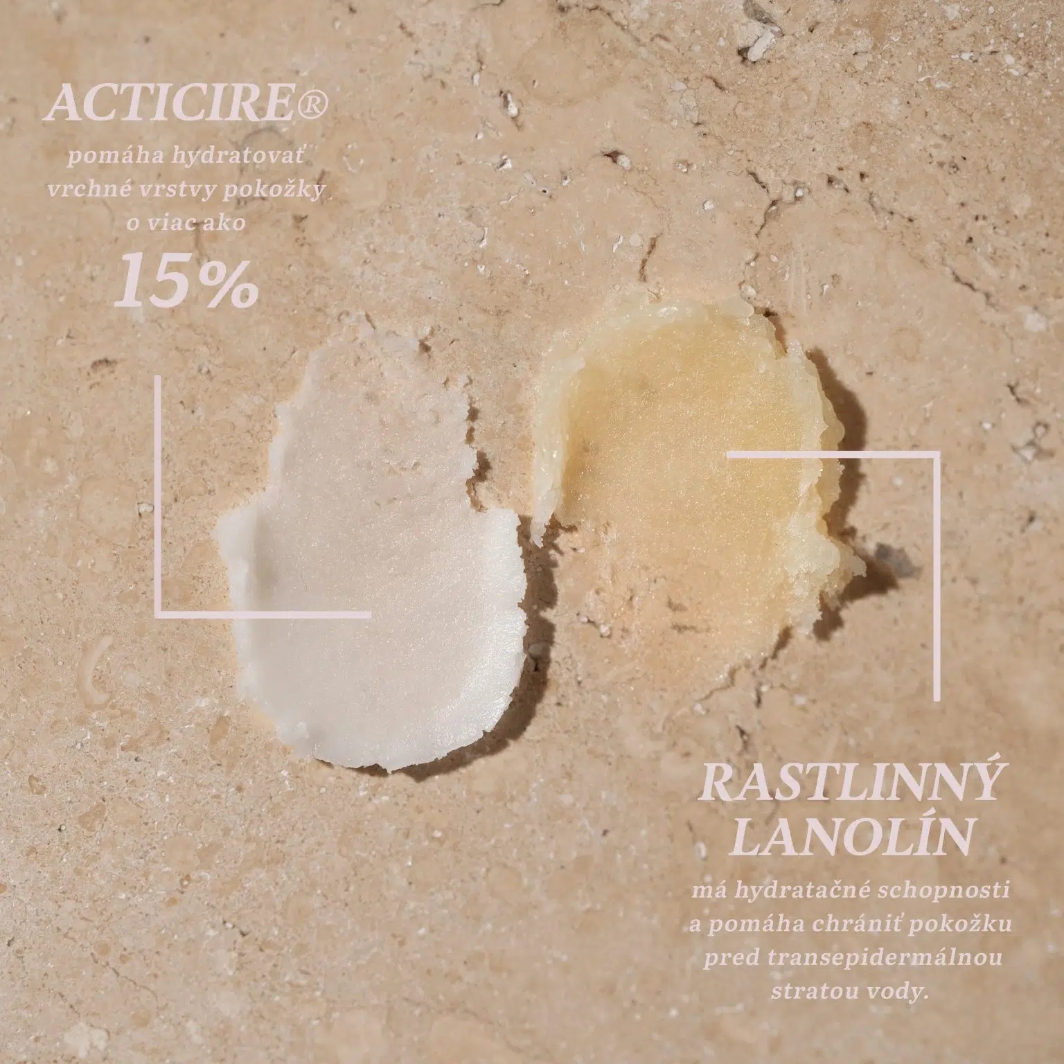 - Acticire® – inovativní komplex tří rostlinných vosků (akácie, slunečnice, jojoba), který vytváří ochranný film, zjemňuje texturu rtů a zvyšuje jejich hydrataci až o 30 % už po týdnu používání.